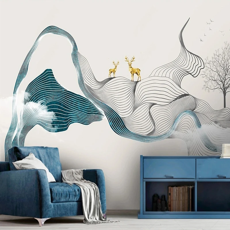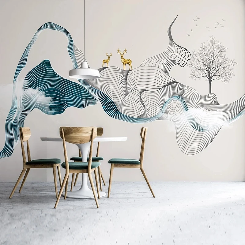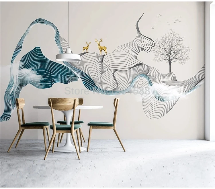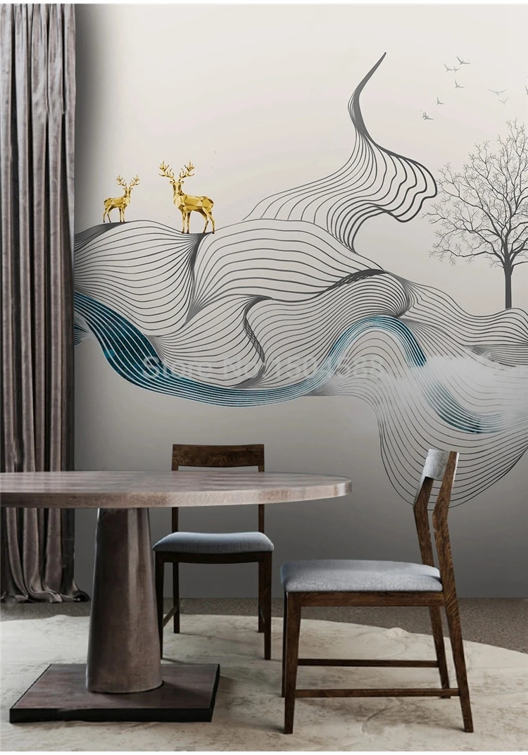 Настенные 3D обои в китайском стиле на заказ, абстрактные чернила, линия дыма, пейзаж, художественная концепция, лось, фон для стен