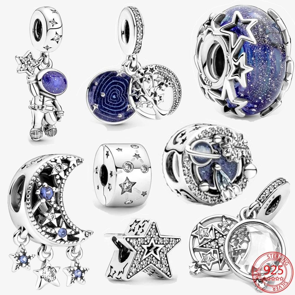 Женский браслет из серебра 925 пробы, с подвесками в виде звезд и галактики