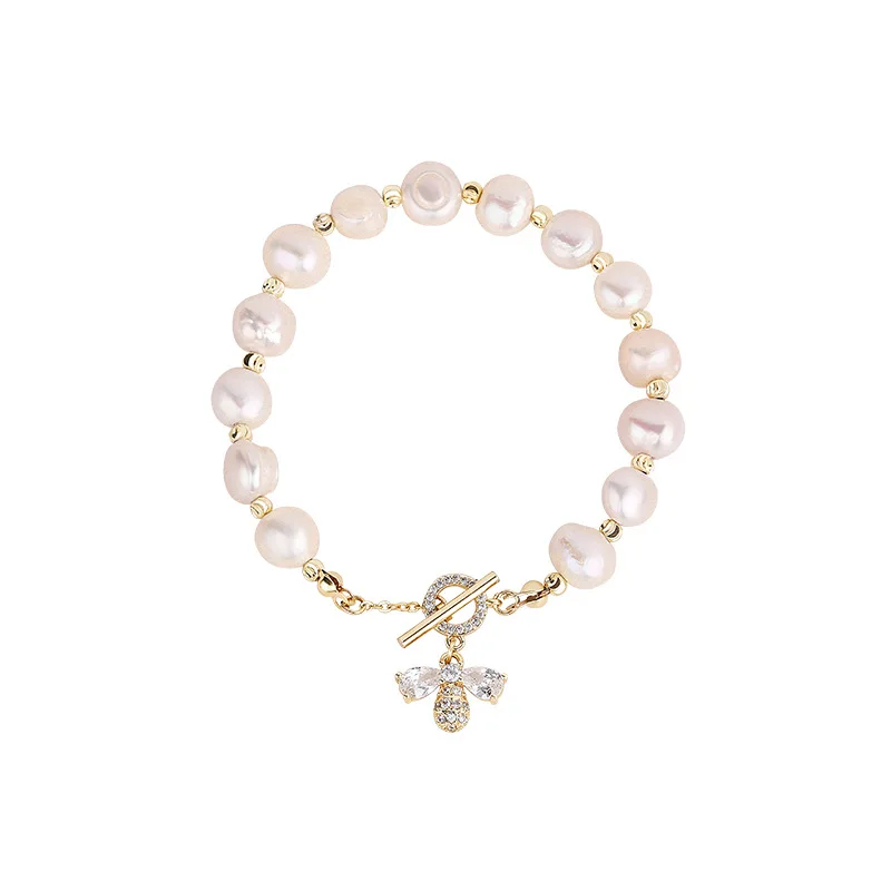 2021 элегантный браслет в стиле барокко из натурального жемчуга для женщин роскошный браслет с подвеской в виде пчелы из циркония модные милые ювелирные изделия для девушек