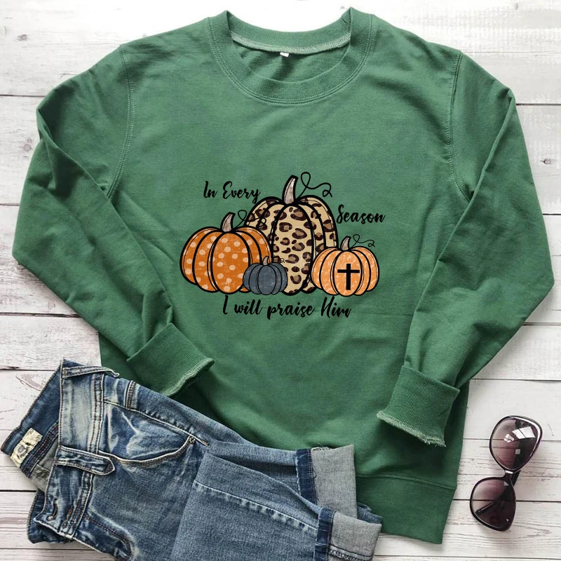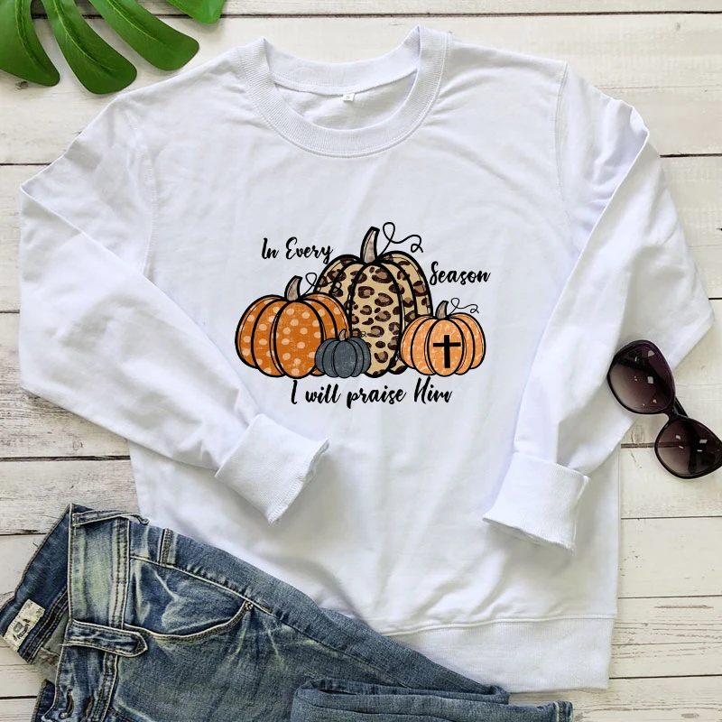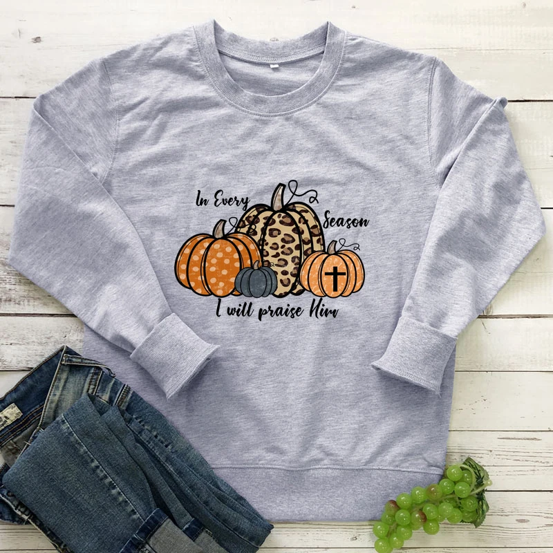 Свитшот с леопардовой тыквой из 100% хлопка, милый женский пуловер ...