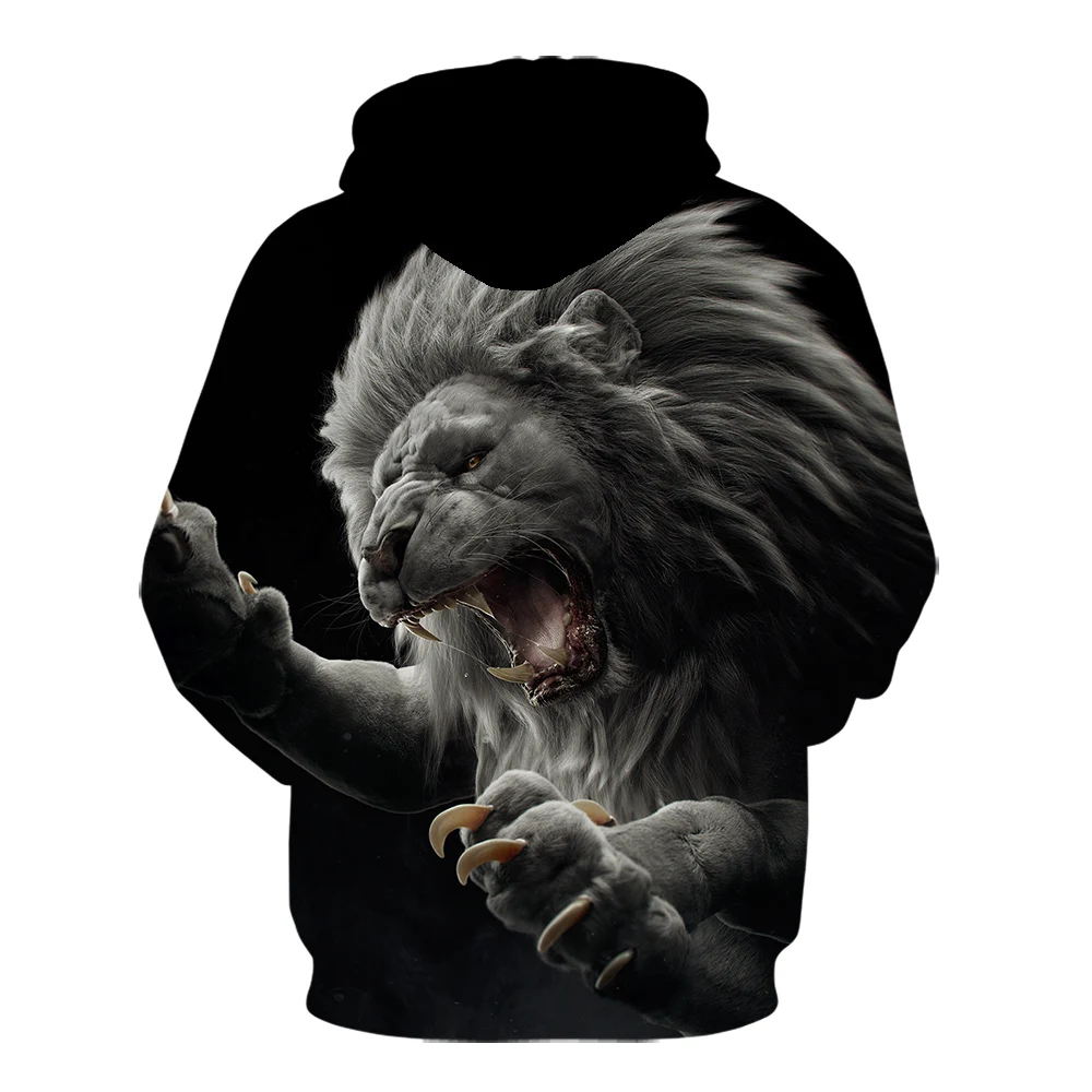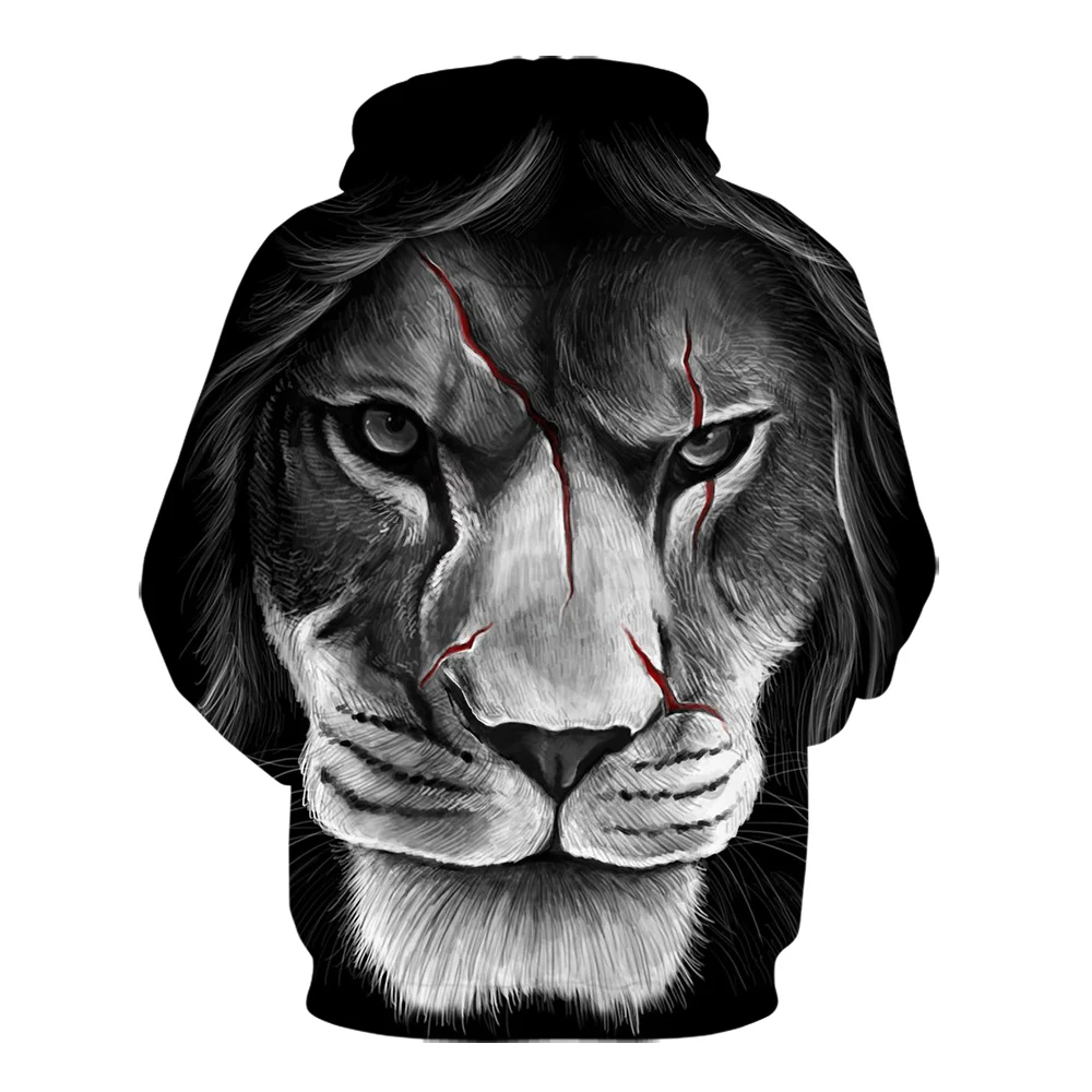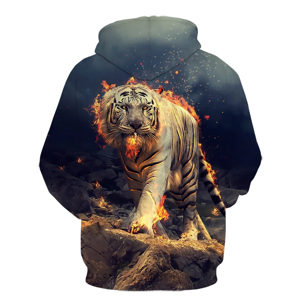 Мужская толстовка с капюшоном и 3D-принтом тигра, черная куртка в стиле хип-хоп, Осень-зима