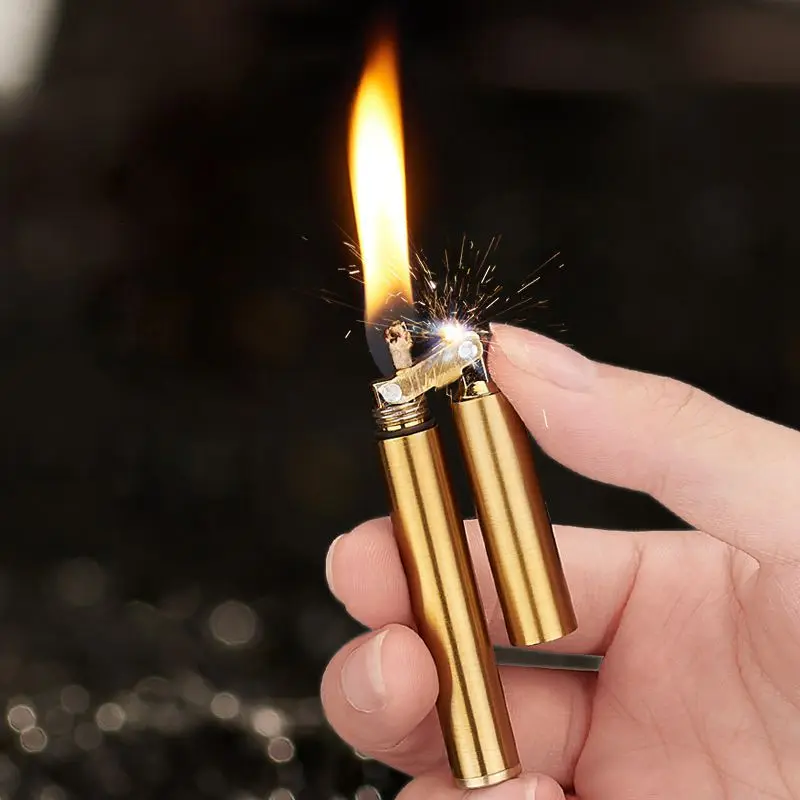 Креативная керосиновая Зажигалка нунчаку с шлифовальным кругом, мини металлическая зажигалка для сигарет, уличная Зажигалка для выживания