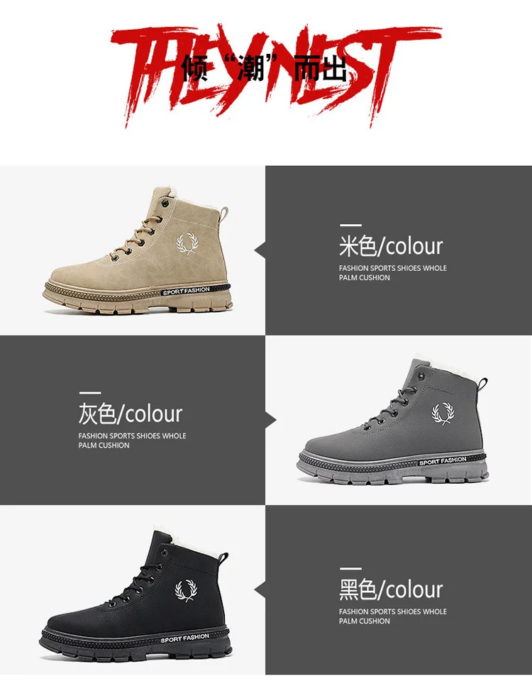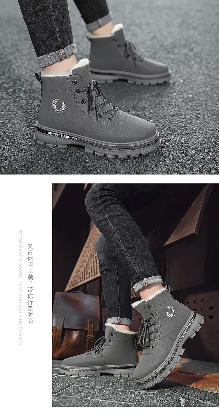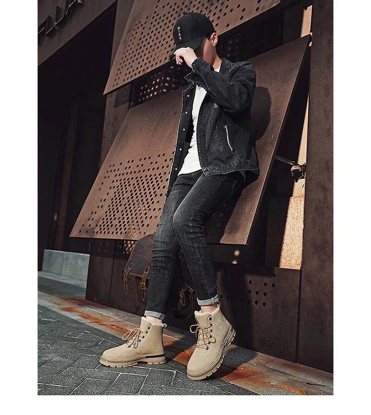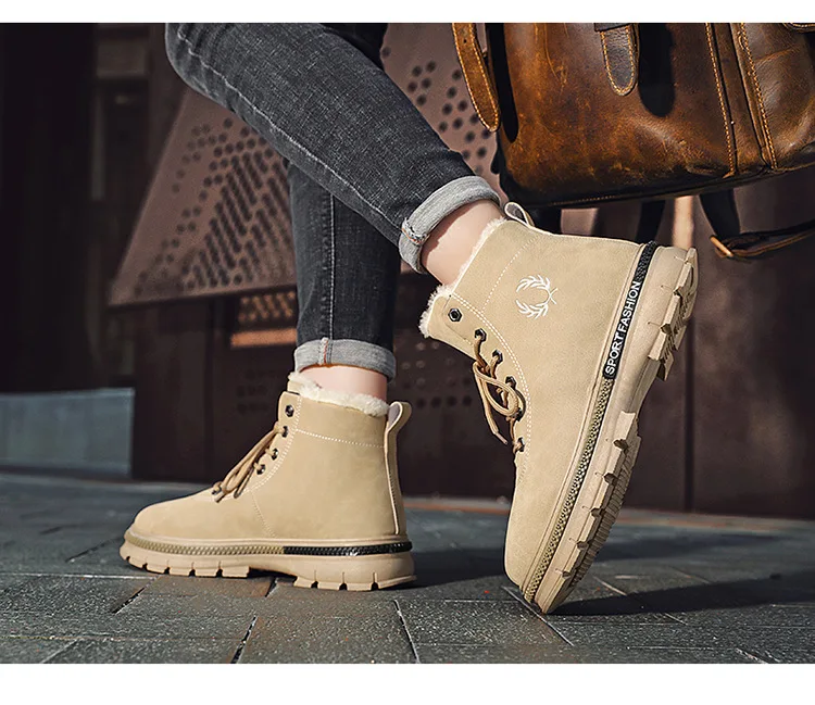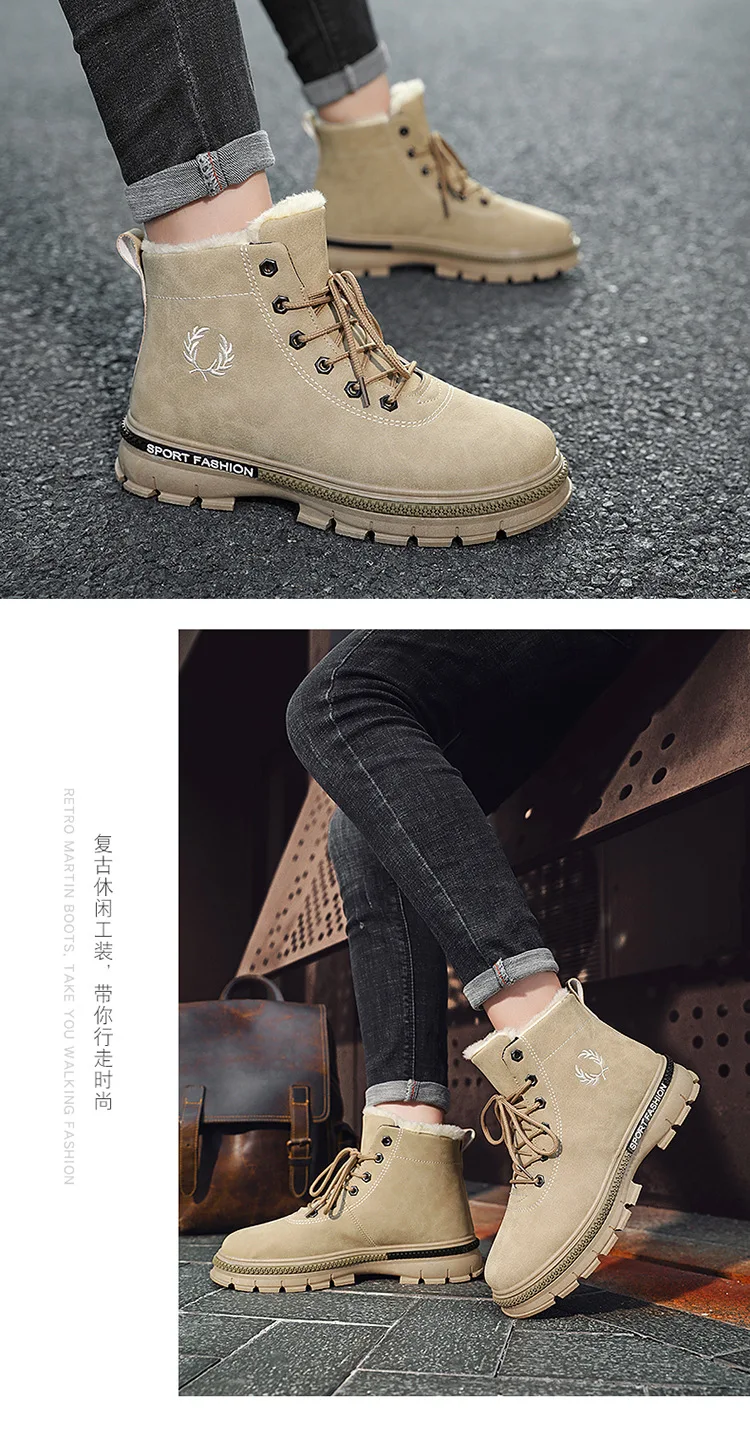 Мужские ботинки со шнуровкой, Зимние Повседневные Утепленные ботинки из хлопка и вельвета, с высоким берцем, Короткие Плюшевые ботинки, 2021