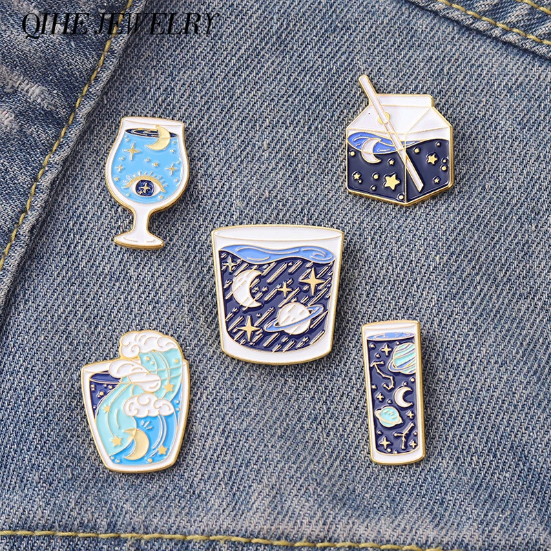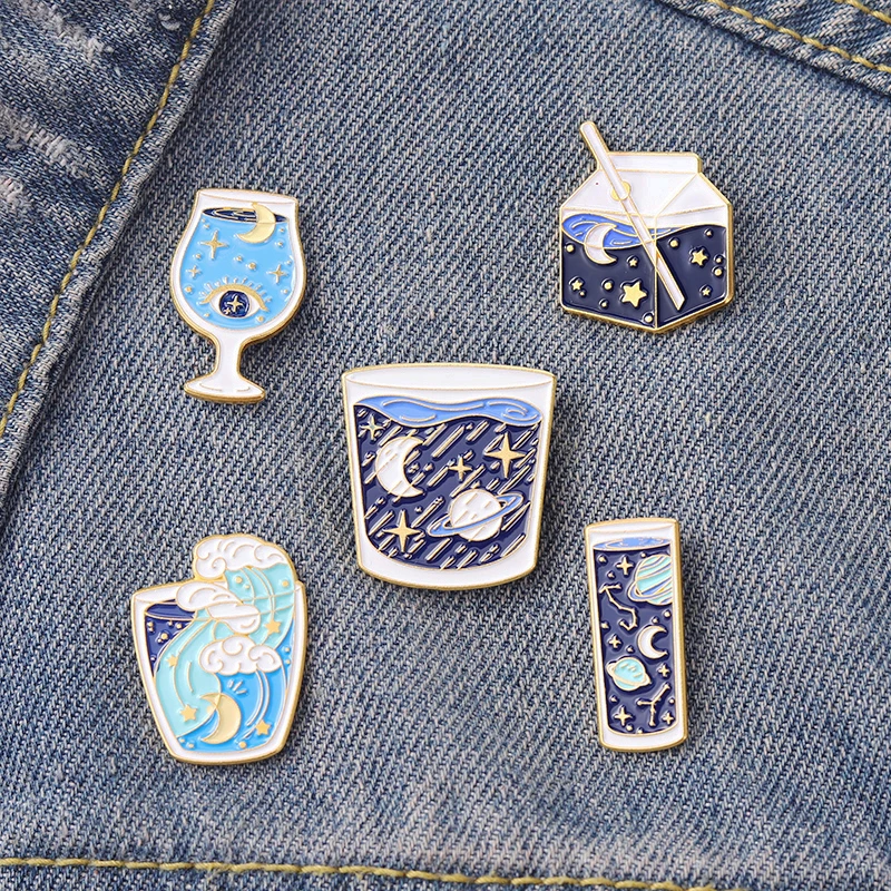 Эмалированная булавка с изображением океана, космоса, Луны, звезды, планеты, морской волны, романтические Броши с искусственными крышками, декоративный подарок для женщин и мужчин, ювелирные изделия