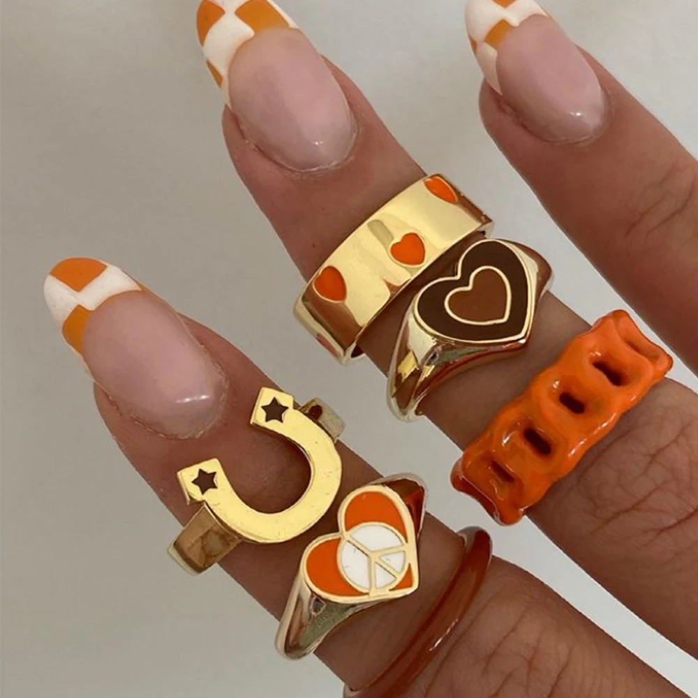 Женские кольца из сплава с эмалью, золотистые и серебристые кольца в форме сердца Инь Янь со смайликом, подарочный набор украшений