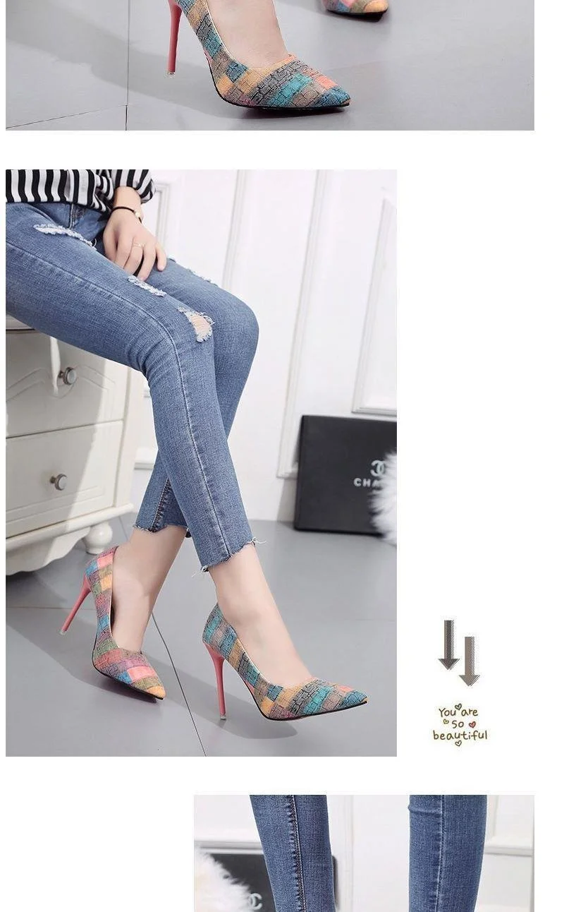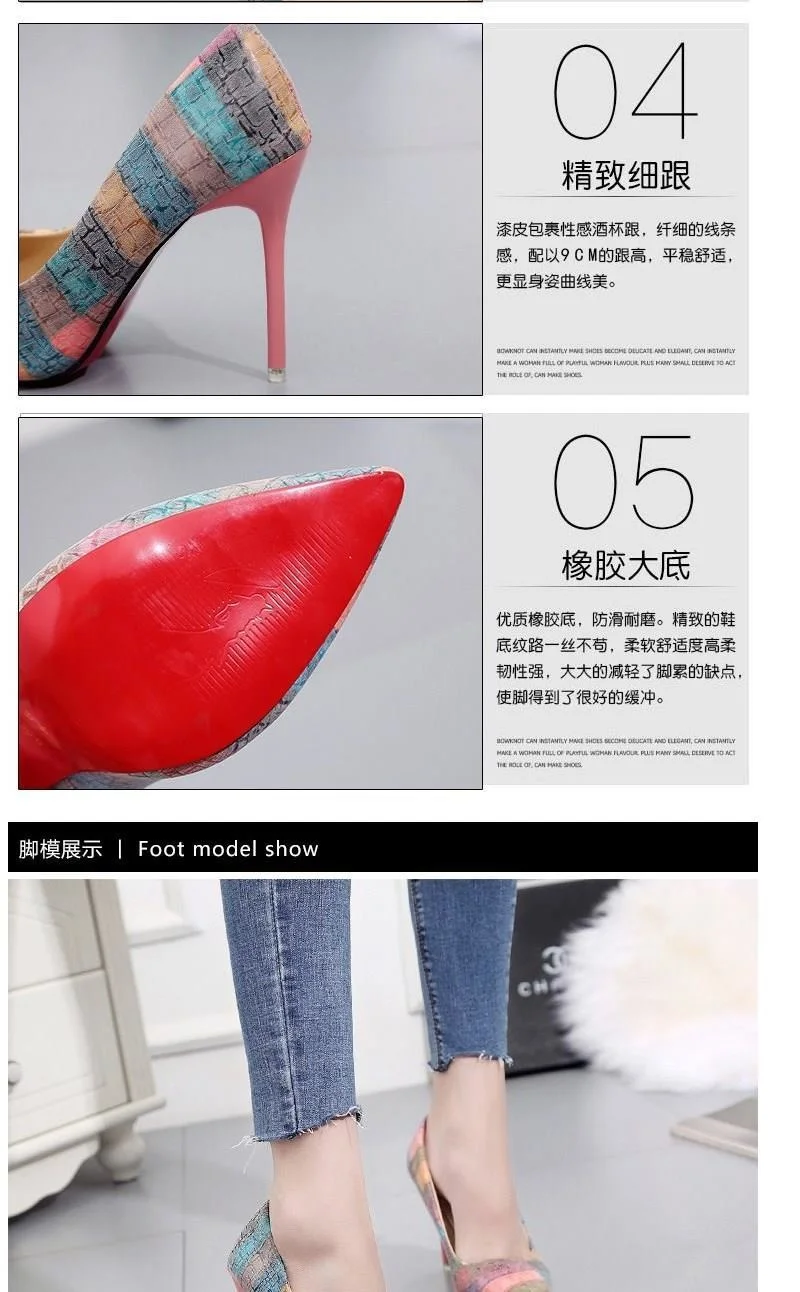 Новые туфли с острым носком 10 см в Корейском стиле, Яркие туфли на...