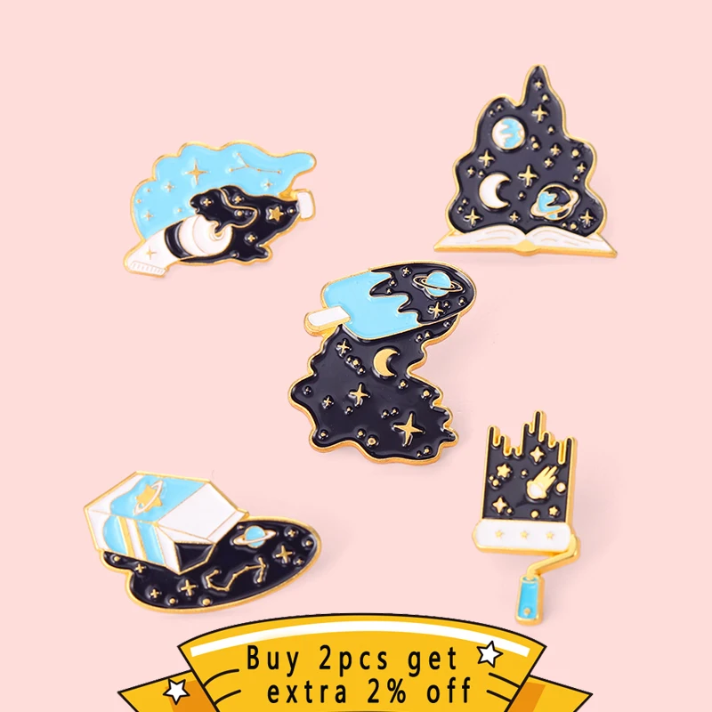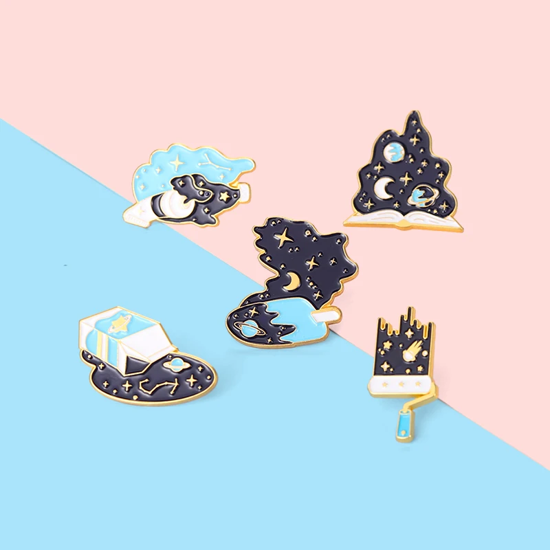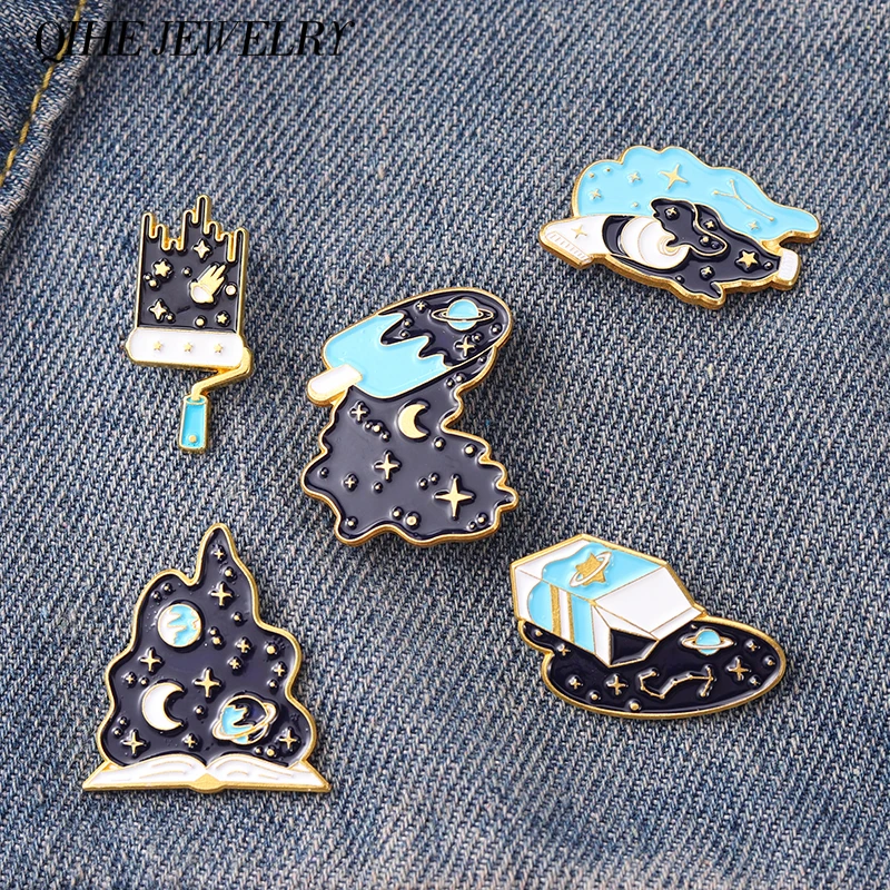 Эмалированная булавка в виде Галактики, броши с космическим рисунком, металлические значки в виде Луны, звезды, планеты, аксессуары для рюкзака, кепки, подарок для любителей пространства художника