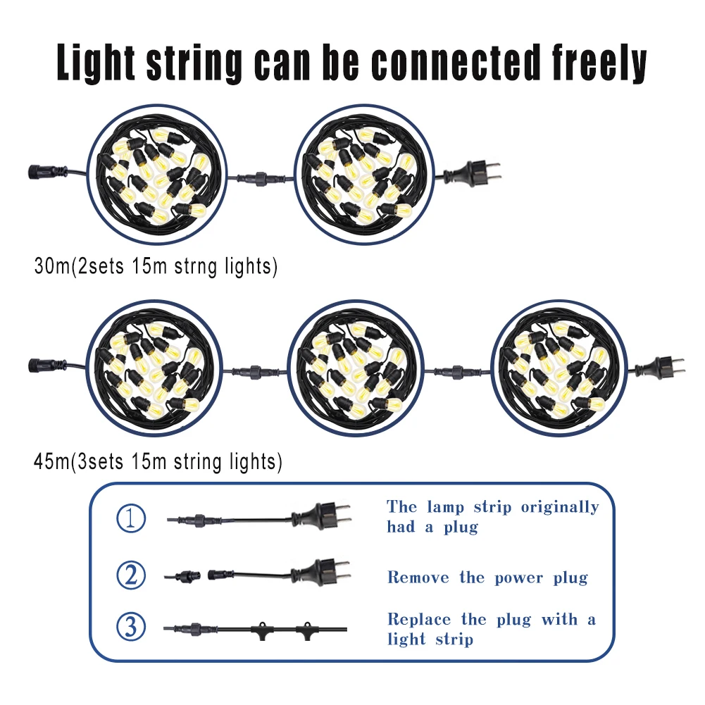 15 м 30 м Водонепроницаемые садовые украшения наружные светодиодные гирлянды S14 Эдисона лампы соединительные гирлянды для вечерние рождественские праздники