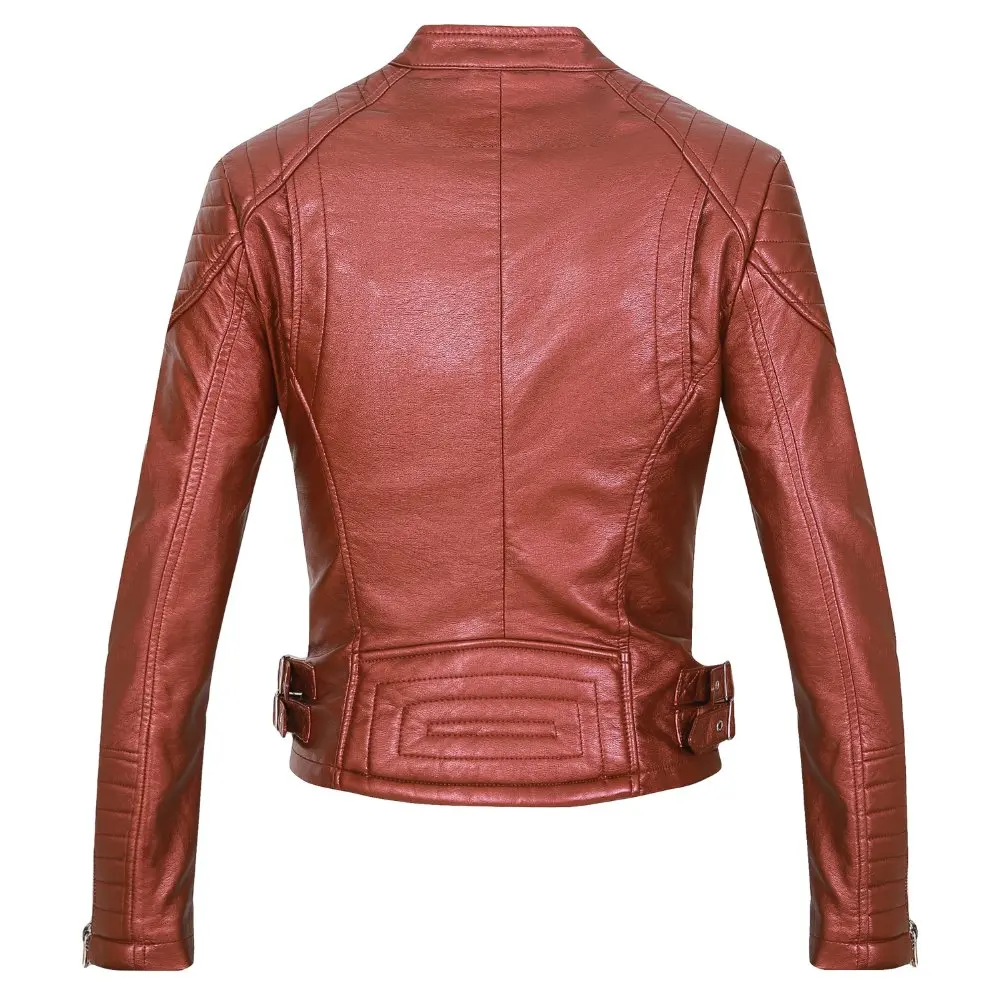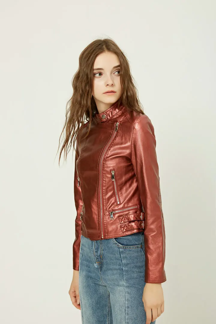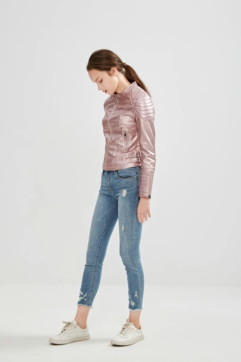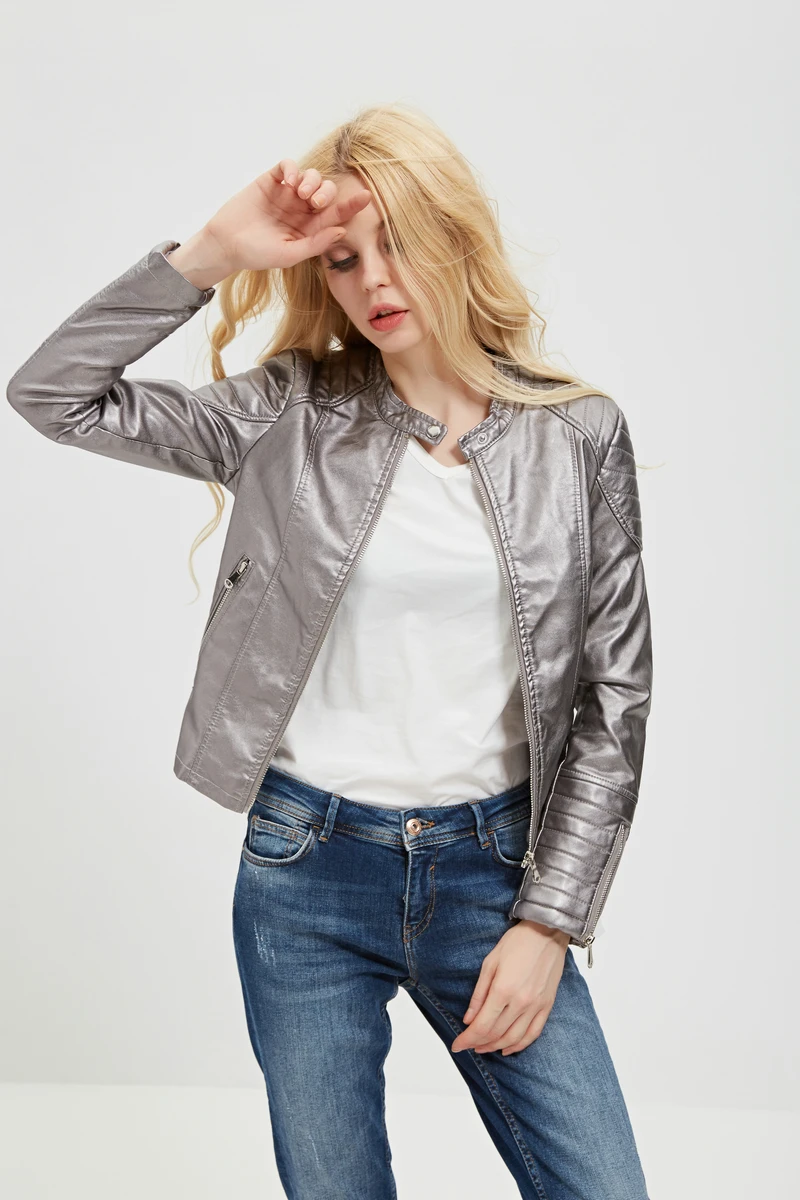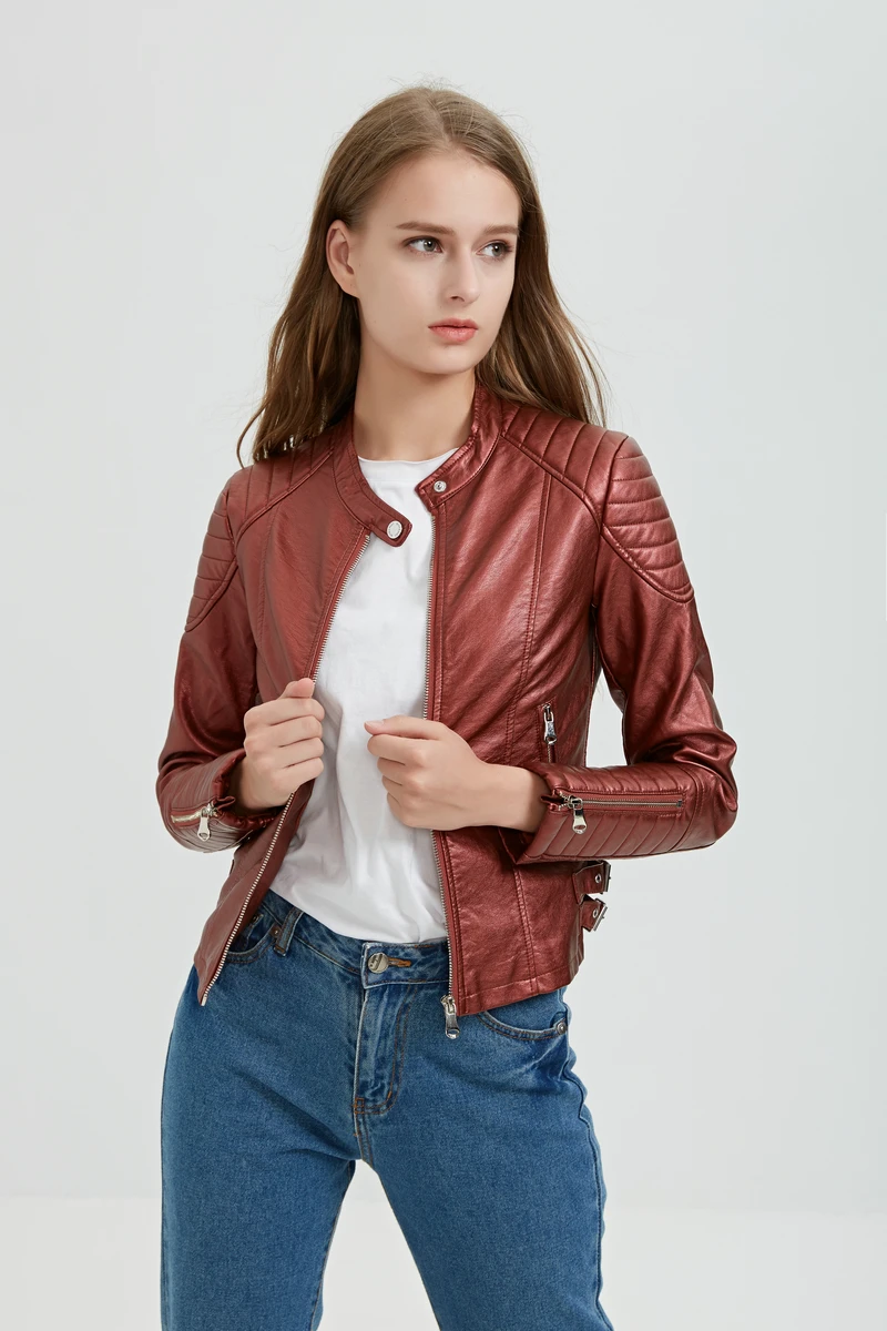 2021 коричневая Черная куртка из искусственной кожи женская короткая приталенная брендовая мотоциклетная байкерская куртка белое кожаное пальто Chaquetas Mujer 5 цветов