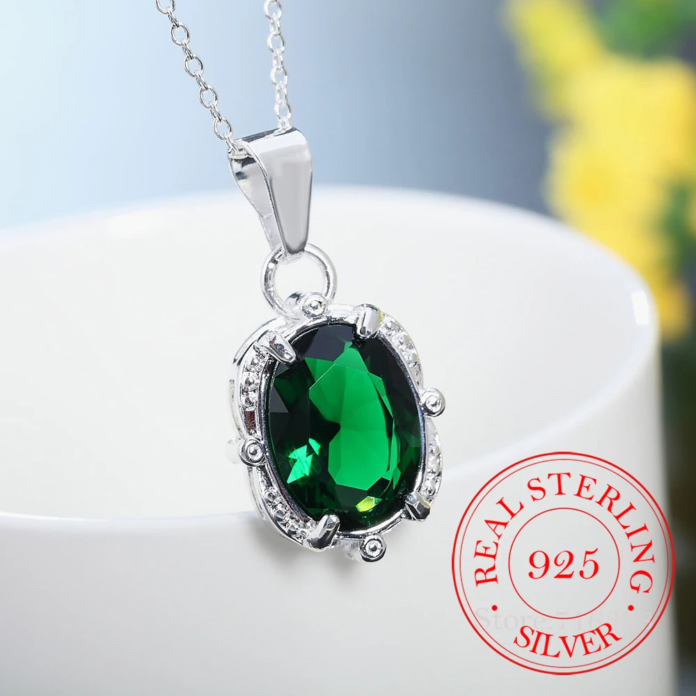 Женское ожерелье из серебра 925 пробы с зелеными кристаллами
