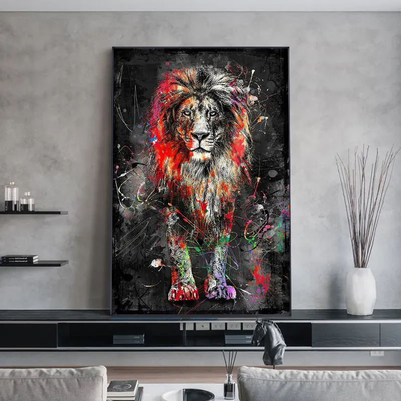 Красочная Настенная картина в виде Льва на холсте, настенные плакаты и принты в скандинавском стиле, картины с животными для гостиной