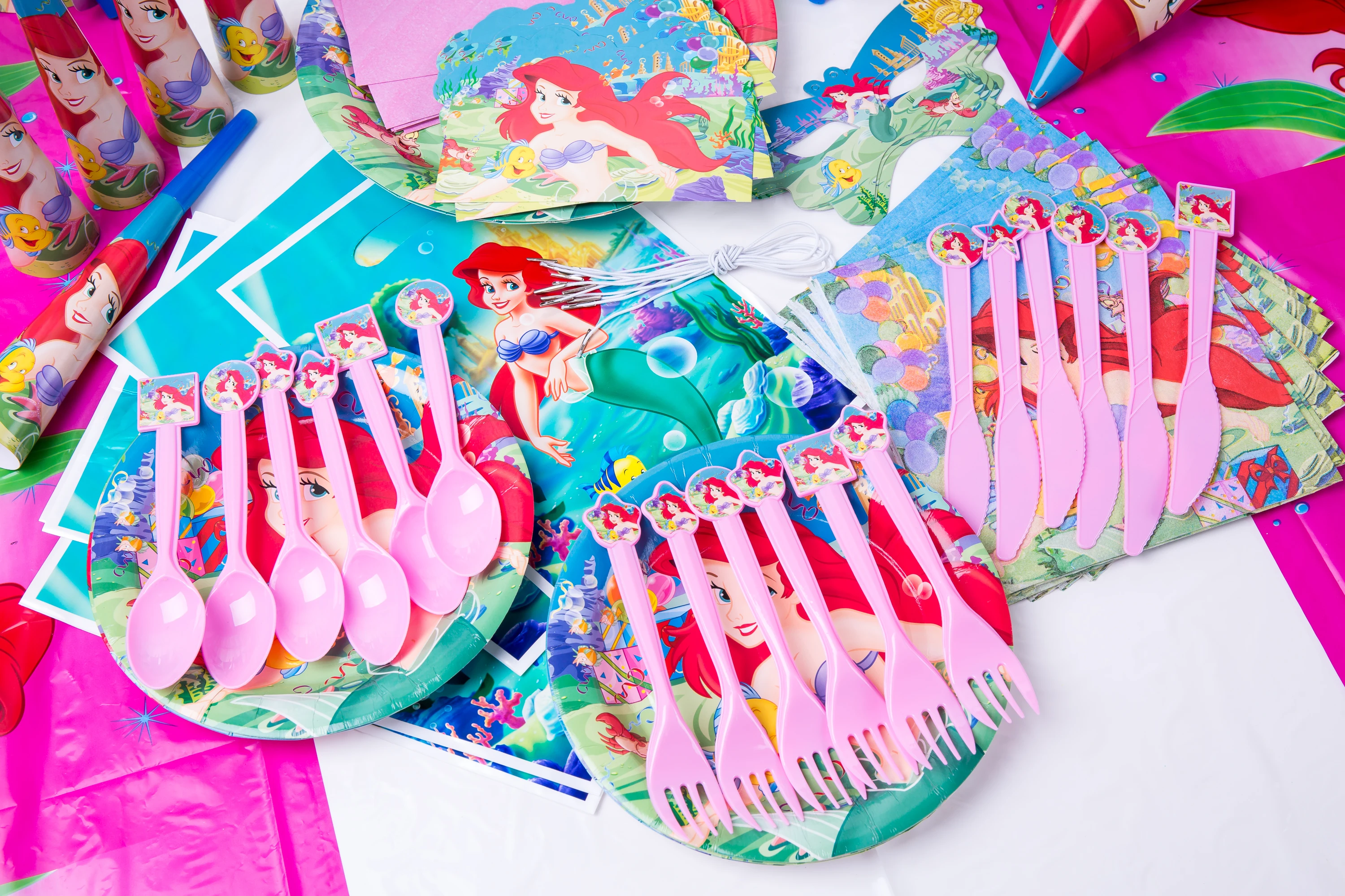 6 Дети Ариэль Русалочка одноразовая посуда товары для дня рождения праздничное украшение событие пользу пол раскрыть девушки