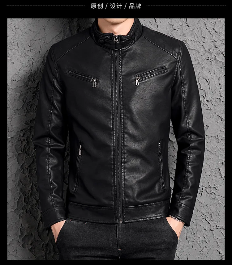 Мужская модель, Мужское пальто на молнии с подставкой, пальто, мотоциклетная куртка из искусственной кожи, Мужская Брендовая верхняя одежда