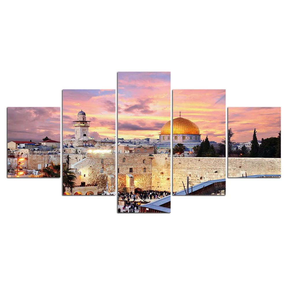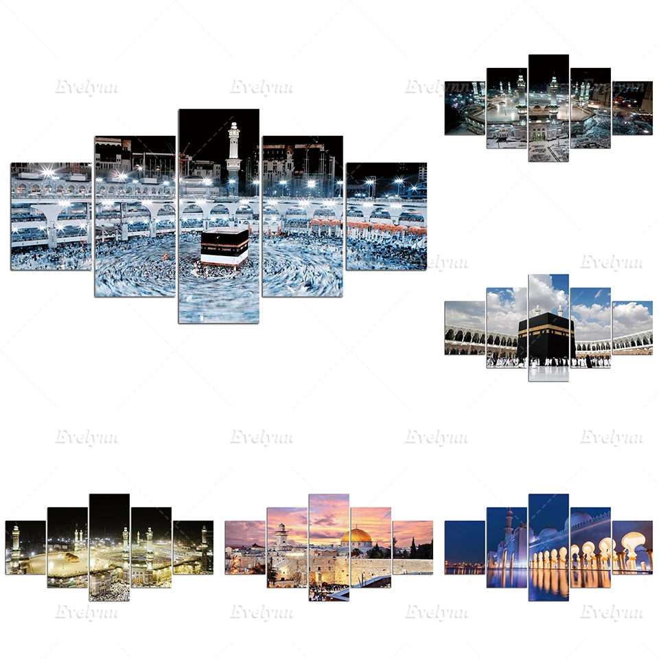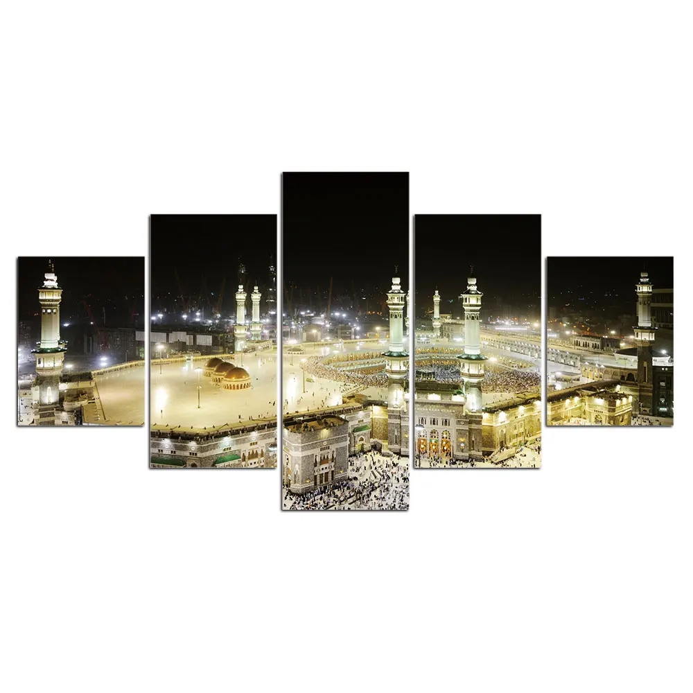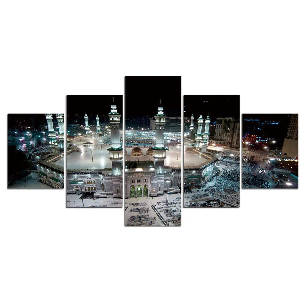 Современная мечеть, холст, 5 шт., картины для мусульманской Великой мечети Мекки, настенные плакаты, мусульманские декоративные картины в рамке
