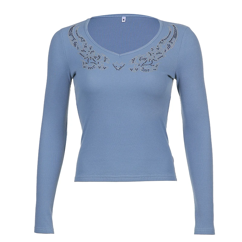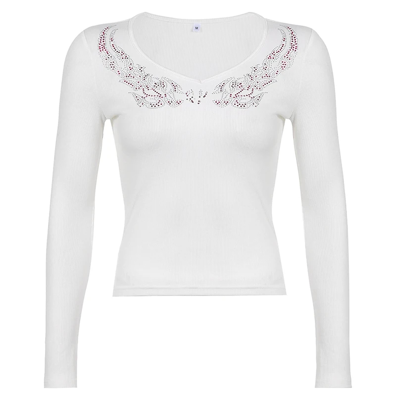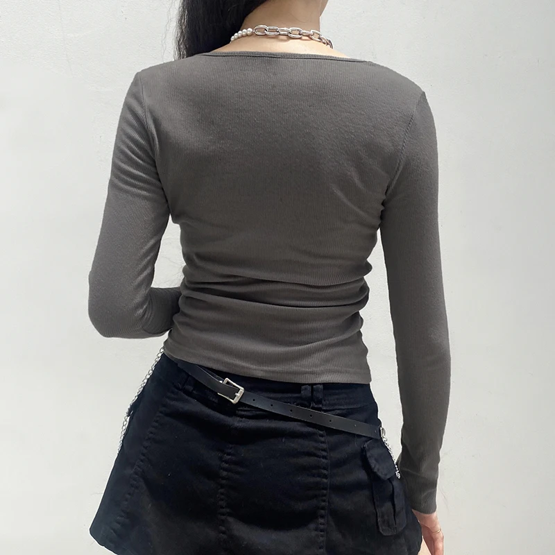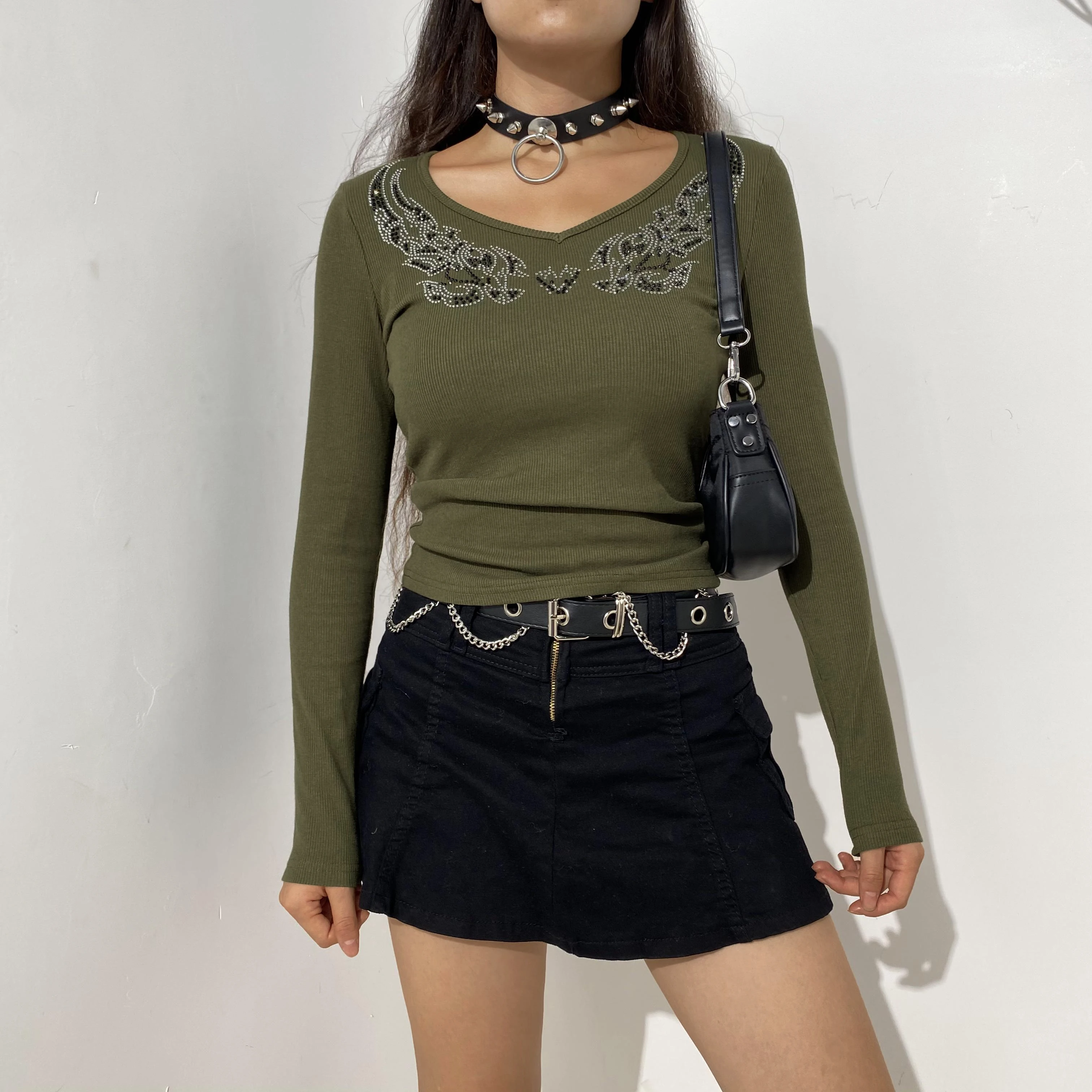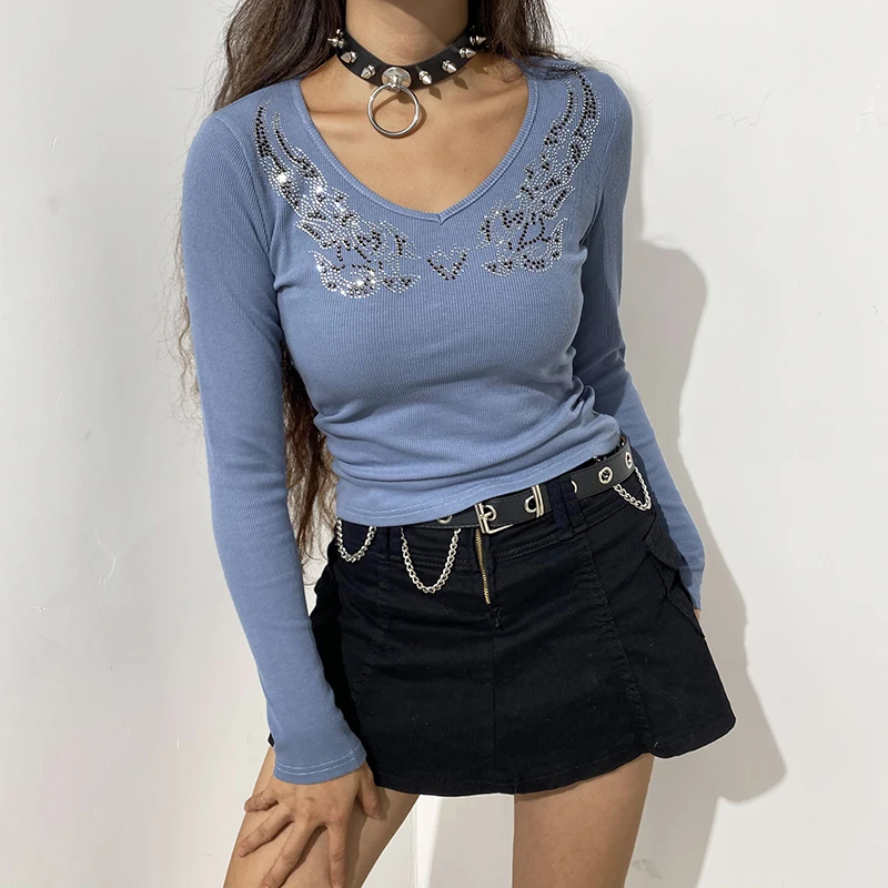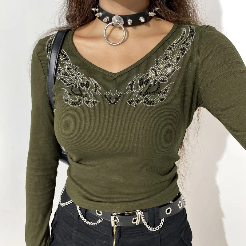 Женский укороченный Топ с длинным рукавом, с V-образным вырезом