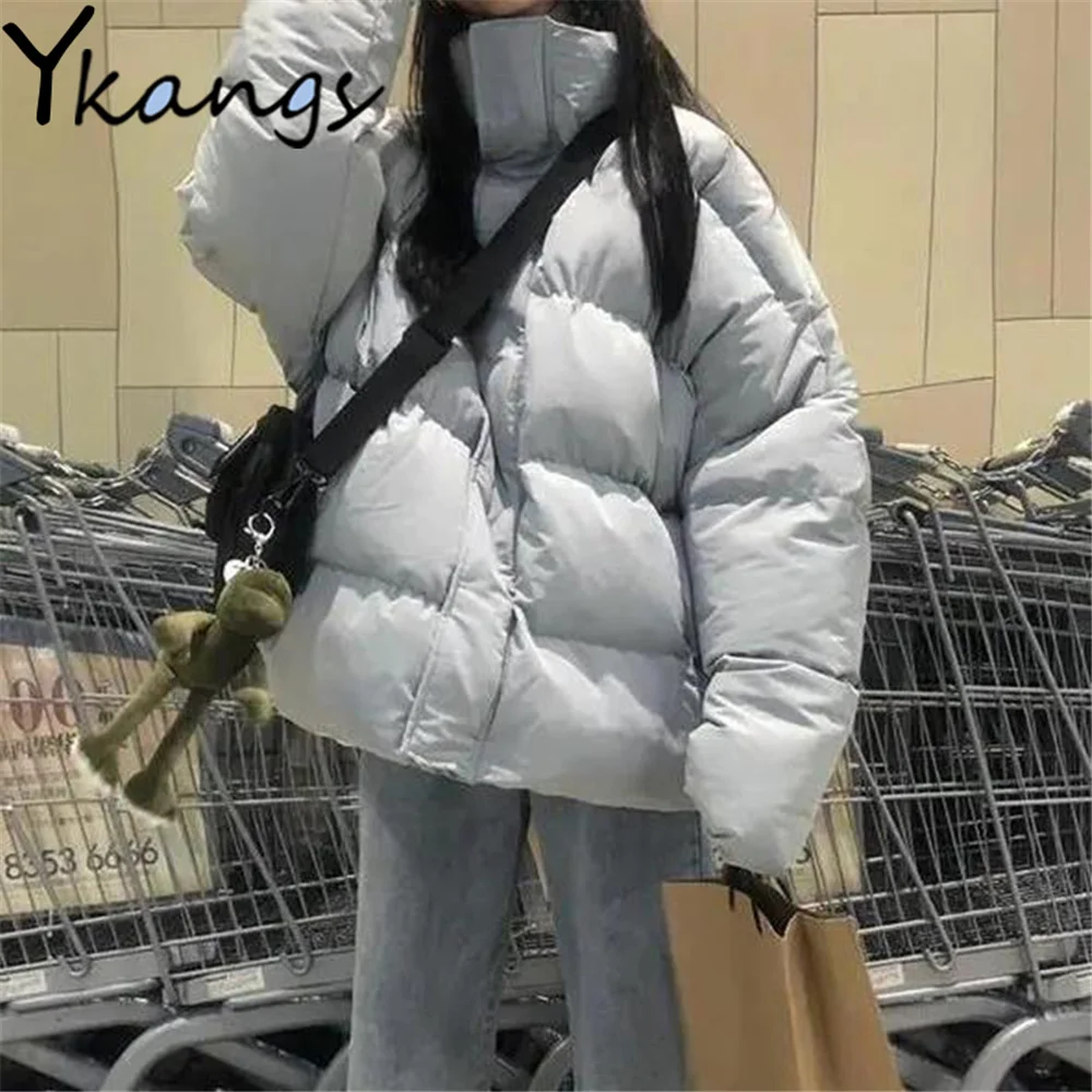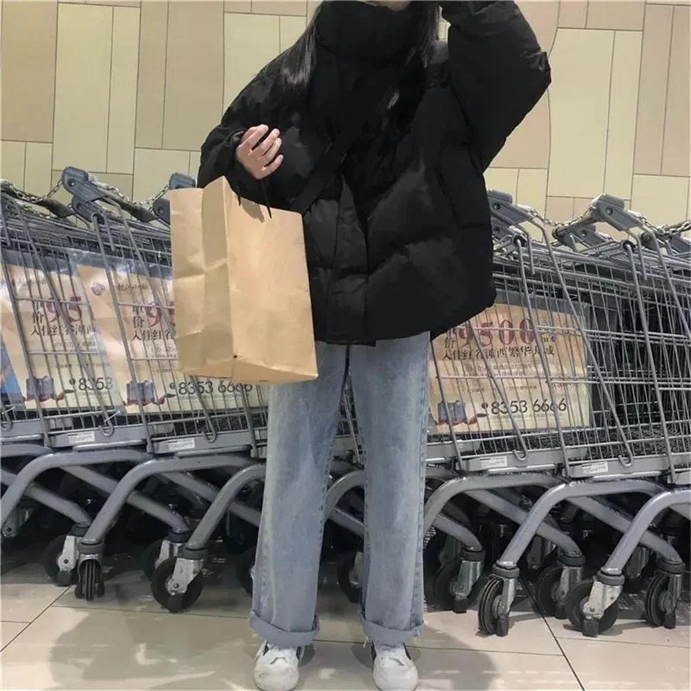 Простая универсальная теплая Женская хлопковая куртка в Корейском стиле, однотонная женская Свободная куртка на молнии в стиле Харадзюку, весна-зима 2022