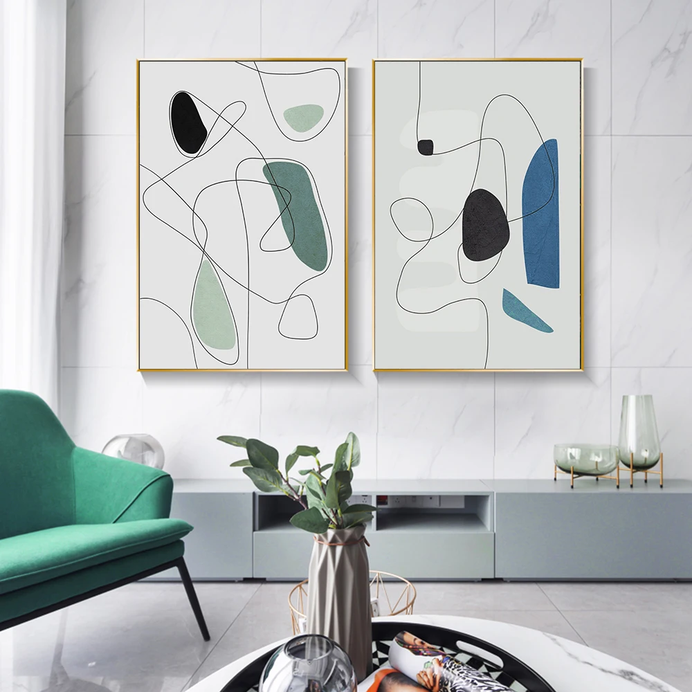 Абстрактная Геометрическая живопись на холсте, новые скандинавские минималистичные плакаты и принты, настенное искусство для гостиной, украшение дома