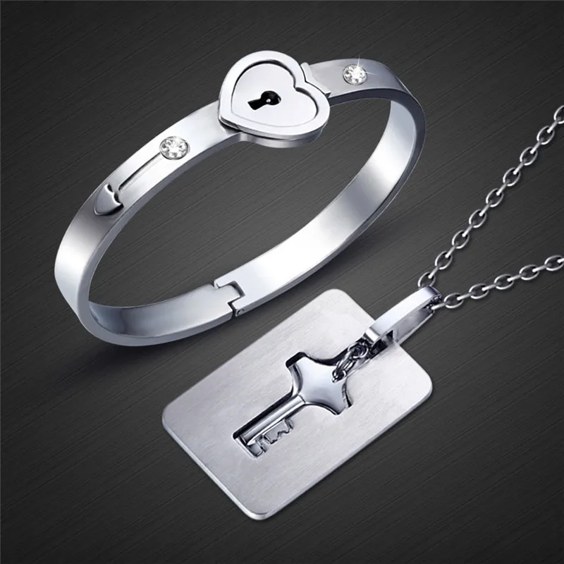 1. Этот ювелирный набор имеет ожерелье в форме ключа и браслет в форме замка. Это очень романтичный комплект для пар.