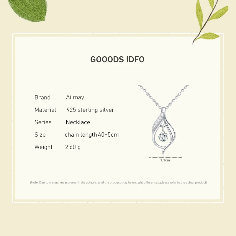 Ailmay Настоящее серебро 925 пробы, простое ожерелье с подвеской в ...