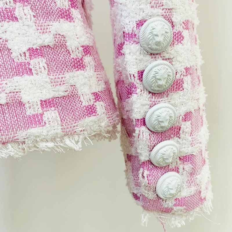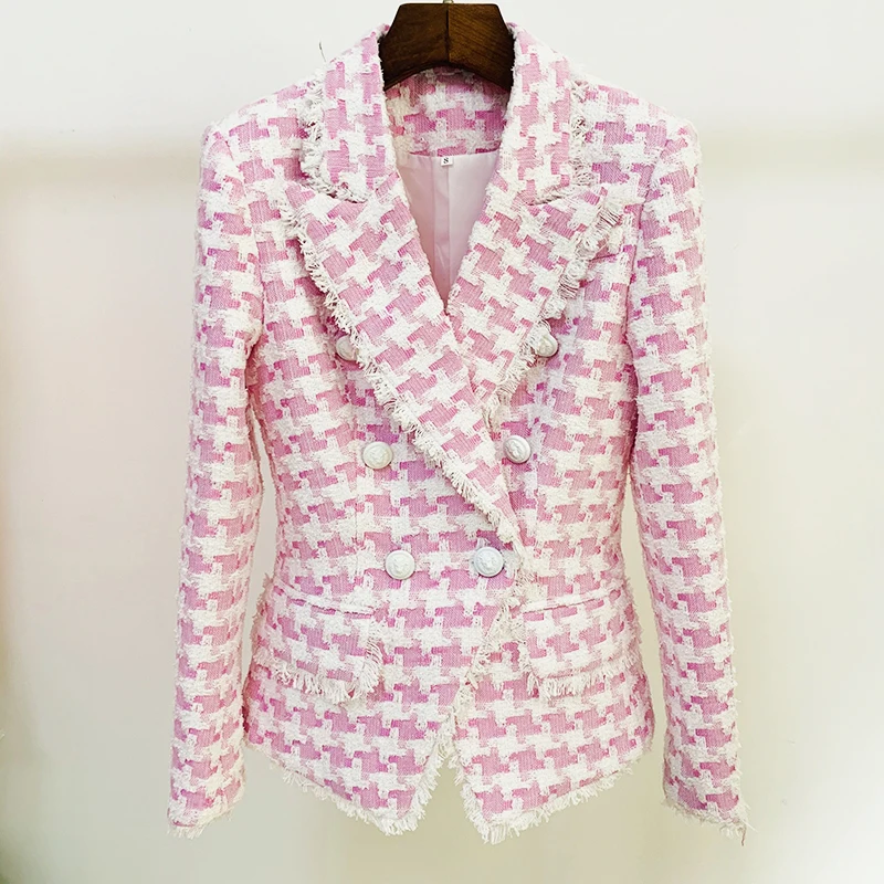 Женский твидовый блейзер в стиле гусиные лапки на пуговицах