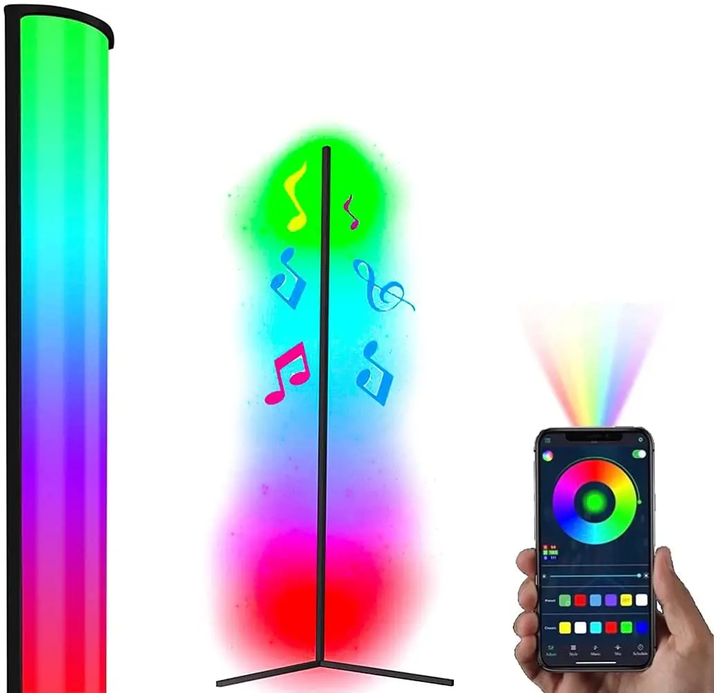 Светодиодная угловая напольная лампа RGB с регулируемой яркостью, умный светильник с дистанционным управлением через приложение, 1,5 м, окружающий ночсветильник для гостиной, спальни Вечерние