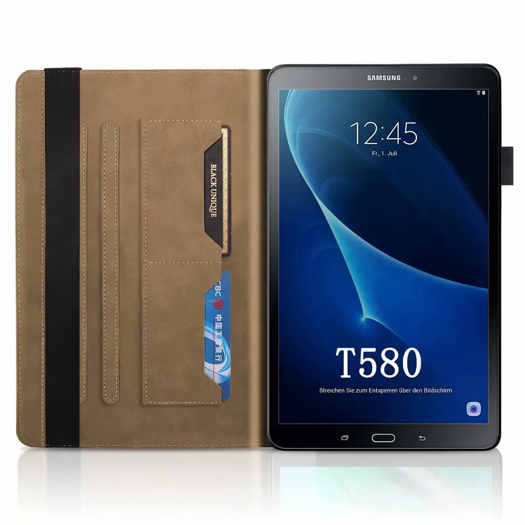 Кожаный чехол высокого качества для Samsung Galaxy Tab A 10,1, T580, T585, чехол с трехмерным слотом для карты в виде дерева, ремешок для ручки, чехол для планшета Tab A6 2016