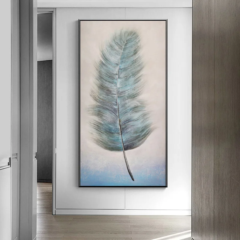 Абстрактные картины маслом с желтыми перьями, картины на холсте, ху...