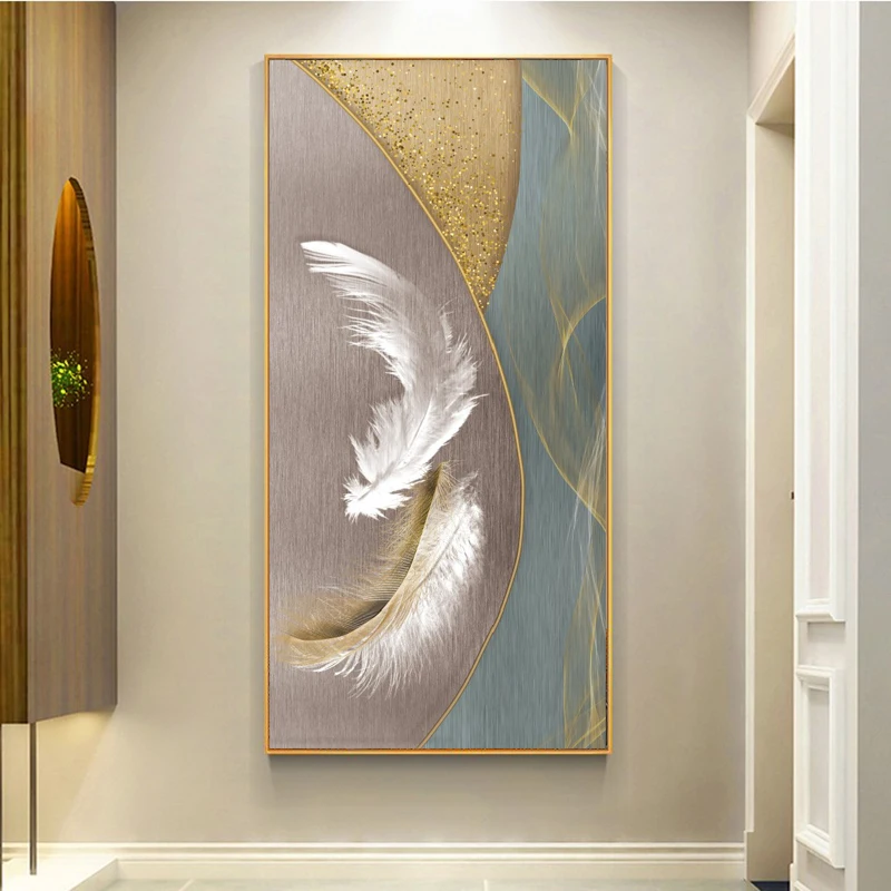 Современная абстрактная картина маслом на холсте в скандинавском стиле, постер с золотыми перьями и печать, настенные картины для гостиной, украшение для дома