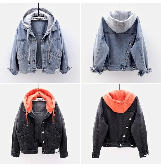 Новая модная джинсовая куртка 2021, Женское пальто со съемным капюшоном, короткая верхняя одежда, однобортная женская джинсовая Повседневная Верхняя одежда со множеством карманов