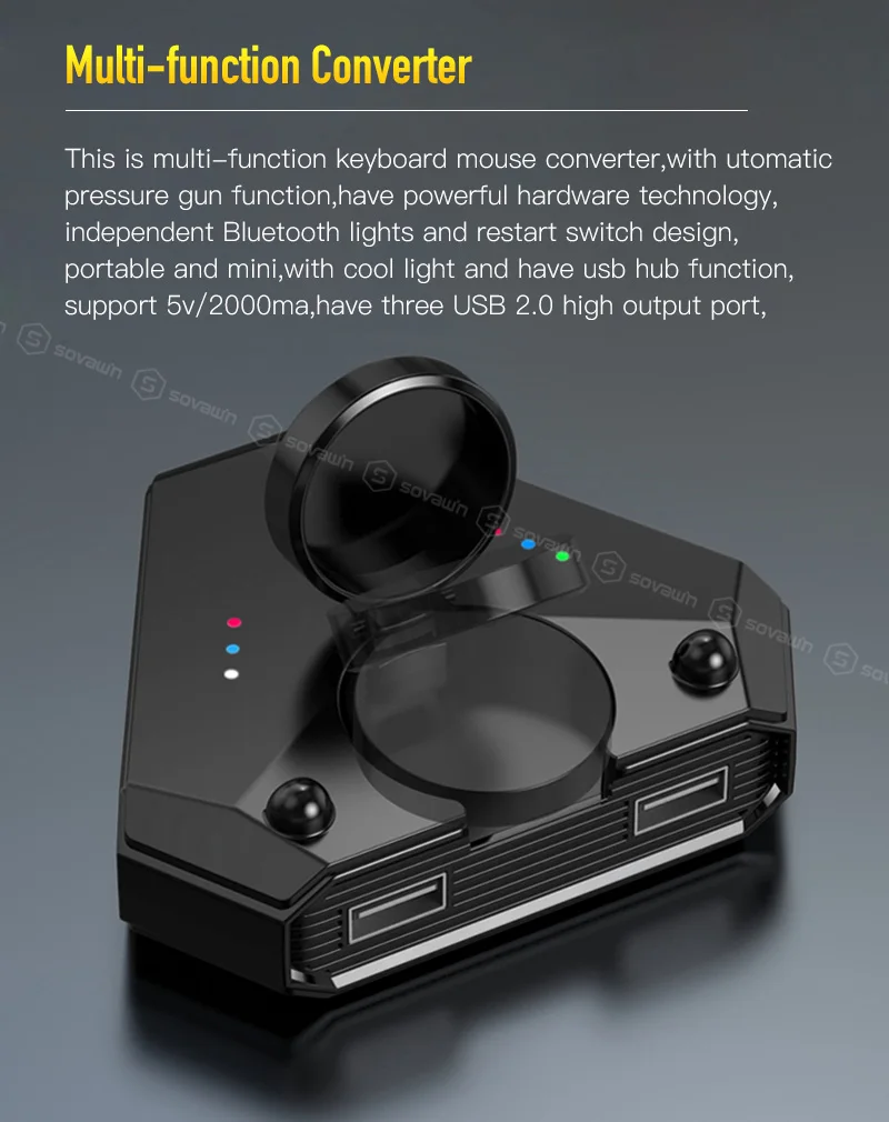 1. Беспроводное подключение клавиатуры и мыши, простой и удобный в использовании, подключи и играй; Поддержка пользовательских кнопок настройки для улучшения игрового опыта.