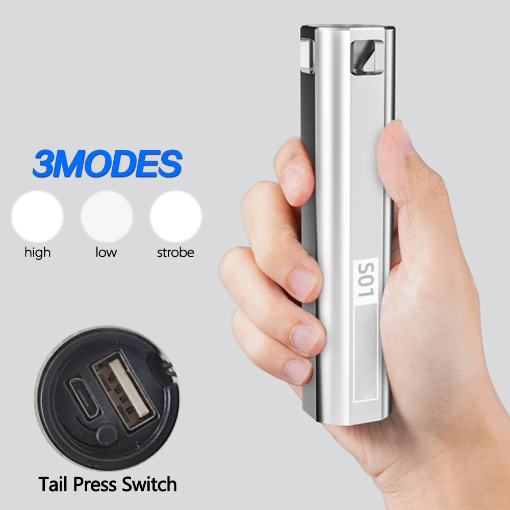 Светодиодный фонарик, USB Перезаряжаемый фонарик, мини внешний акку...