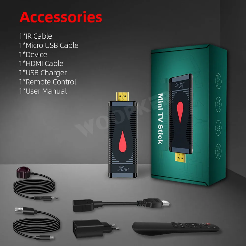-1 x X96 S400 TV Stick-1 пульт дистанционного управления-Кабель HD-1 шт.-1 x ИК-линия-1 кабель Micro USB-1 х USB адаптер-Руководство пользователя-1 шт.