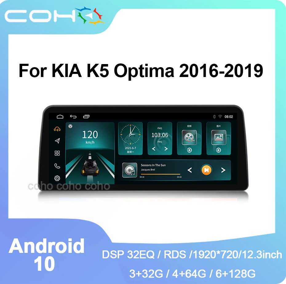 Автомобильная Мультимедийная система COHO, экран 12,3 дюйма, для KIA K5 Optima 2016-2019 1920*720, с GPS, Android 10, 6 + 128G