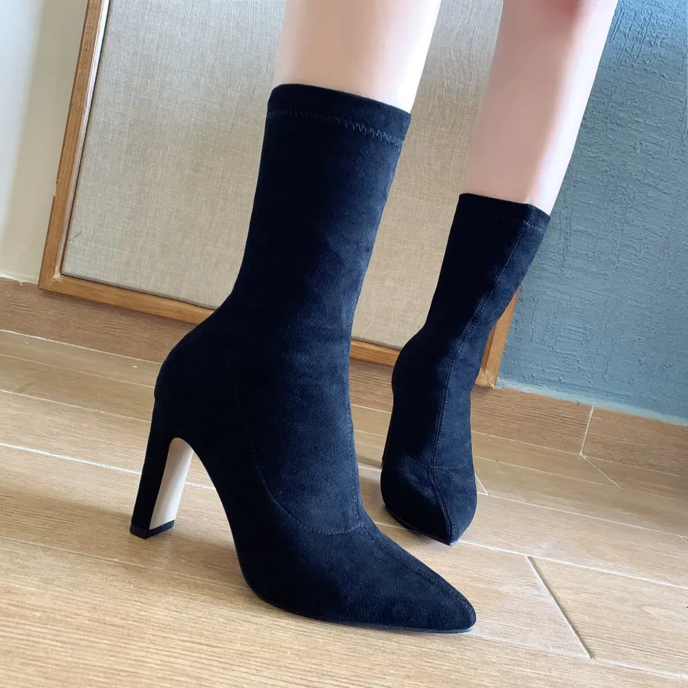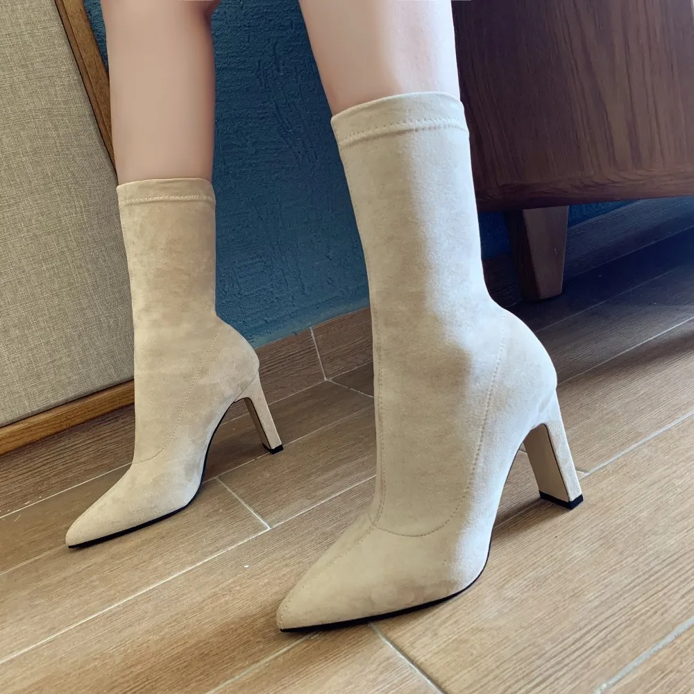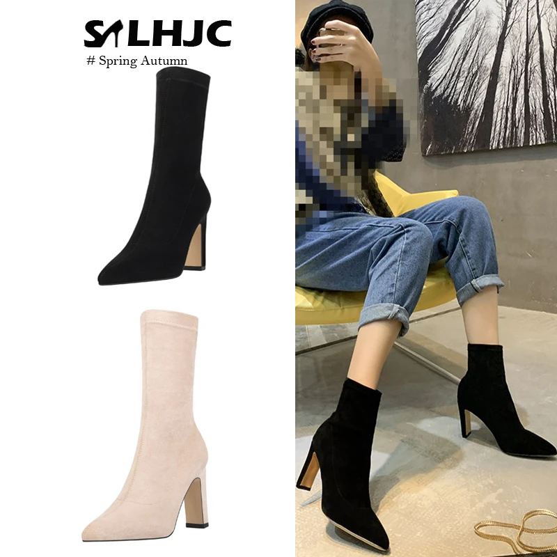 Женские эластичные ботинки SLHJC, сезон весна-осень, заостренный носок, обувь на высоком каблуке, носки, ботинки до щиколотки, обувь 7 см
