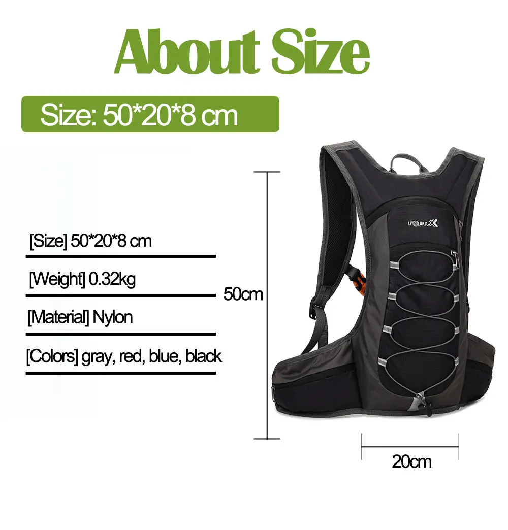 Подробнее о продукте: Название: велосипедный рюкзак, дорожный рюкзак, цвет: синий, черный, красный, серый, розовый красный, темно-синий, вместимость: 10 л Применение: бег, путешествия, альпинизм, треккинг, бег, туризм, Велоспорт, кемпинг, рыбалка и т. д. Соответствие: рюкзак может быть использован вместе с сумкой для воды 2 л 10л спортивный рюкзак, он также обеспечивает большую запасную комнату для ваших предметов первой необходимости, включая дополнительную одежду, спортивное полотенце, телефонный ключ и т. д. храните вещи в заказе и удобнее. Характеристики: водонепроницаемый, дышащий, устойчивый к разрыву. Подходит для занятий бегом, велоспортом, спортивным защитным снаряжением, спортивными сумками для улицы, различными системами загрузки, которые могут удовлетворить ваши различные потребности. Советы: в этой ссылке товара есть различные комбинации продуктов. Пожалуйста, выберите правильный вариант продукта в соответствии с вашими потребностями