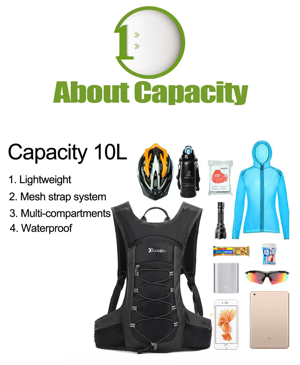 10L спортивный рюкзак, он также предоставляет большую запасную комнату для ваших предметов первой необходимости на открытом воздухе, включая дополнительную одежду, спортивное полотенце, ключ для телефона и т. д. храните вещи в порядке и удобнее.