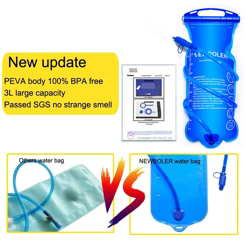 Пищевой FDA одобренный PEVA материал для мочевого пузыря, мягкий рот-кусок питьевой трубки удобно пить. Водный Пузырь имеет герметичный открытый с Экстра широким диаметром, что облегчает заливание воды или добавление льда. Извлеките резиновый кусок рта, и вода выходит наружу. Нажмите резиновый Рот назад, чтобы закрыть. Больше не беспокойтесь о сложности питьевой воды во время бега или езды на велосипеде.