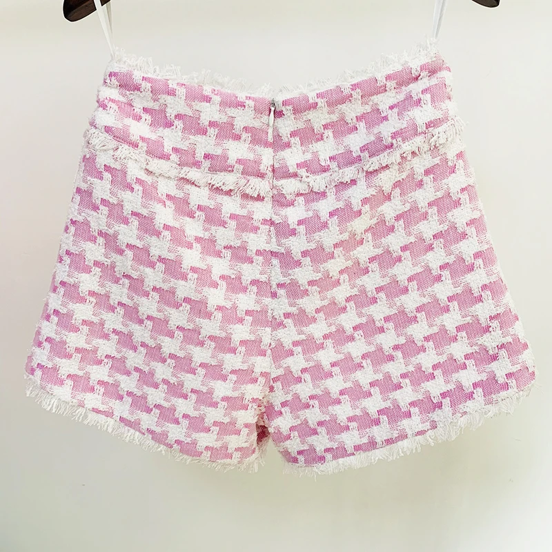 Женские твидовые шорты на пуговицах, с бахромой и бахромой
