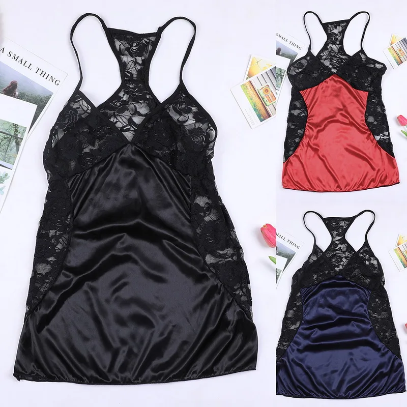 Кружевная ночная рубашка с глубоким V-образным вырезом, нижнее белье, ночные рубашки, ночная рубашка, женская ночная сорочка без рукавов, атласная сексуальная ночная рубашка из искусственного шелка