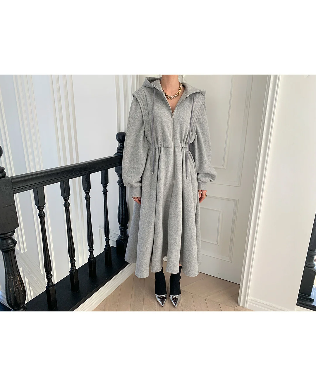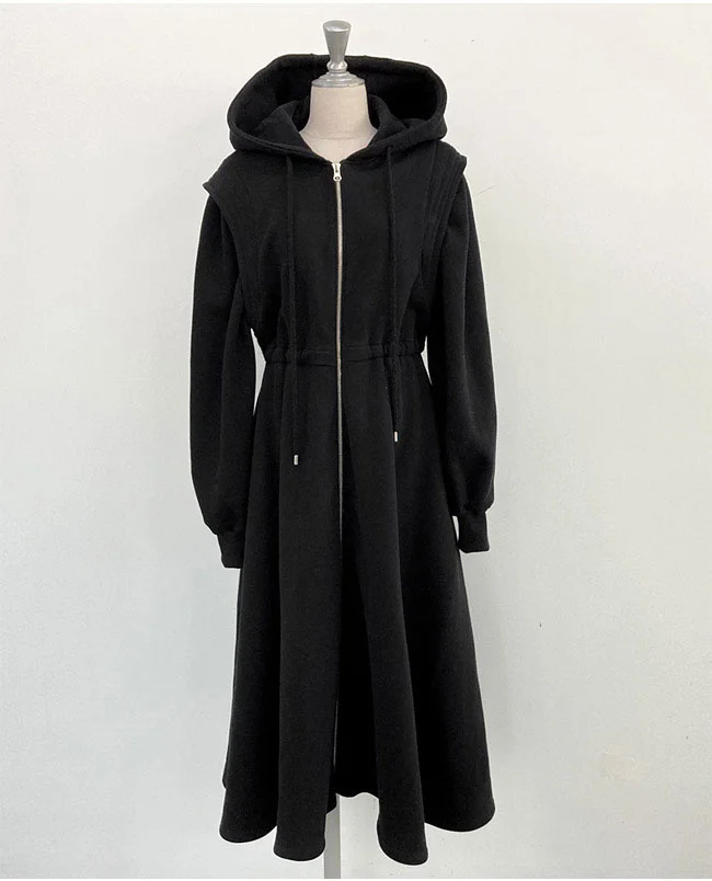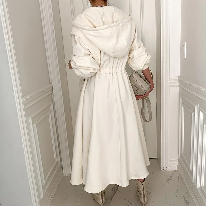 SHENGPALAE модное шикарное платье с капюшоном для женщин Весна 2022 новые свободные платья до середины икры на молнии с длинным рукавом большие качели 5E2545