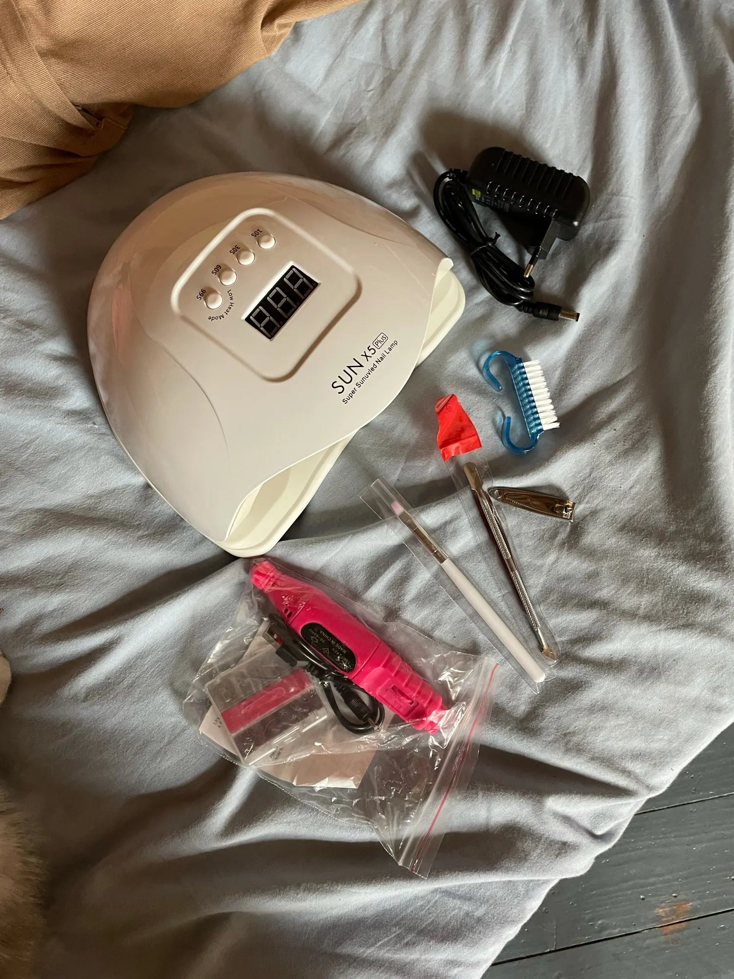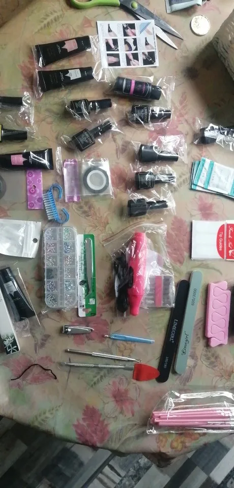 Все было хорошо упаковано, однако все было очень красиво. УФ-гель 8 г, различные шаблоны для французских ногтей, очень блестящие декоративные камни, красивые. Функциональная ультрафиолетовая лампа, поставляется с маслом для кутикулы, несколько очень милых эмалей. Много вещей по низкой цене, рекомендуется.