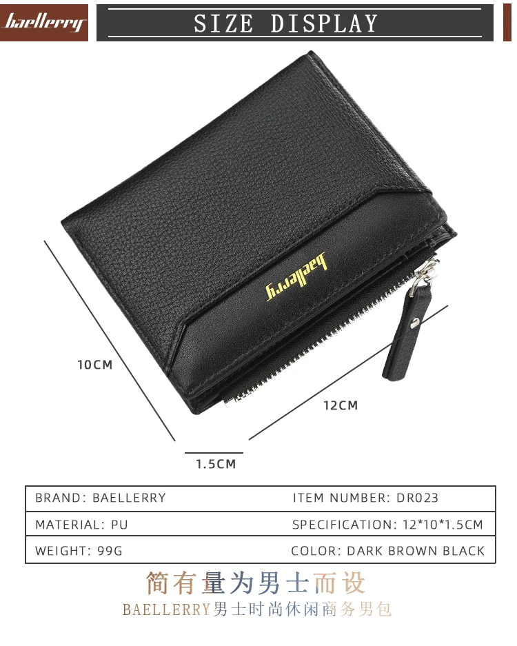 Мужской кожаный кошелек, деловой короткий кошелек двойного сложения...