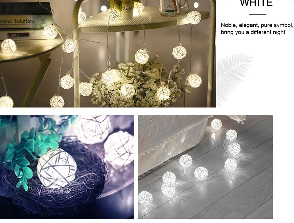 20 40 светодиодный светильник с ротанговыми шариками, гирлянда для ...