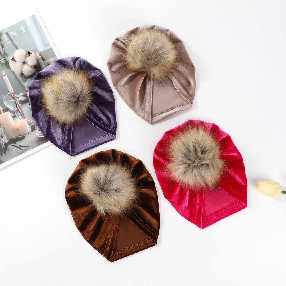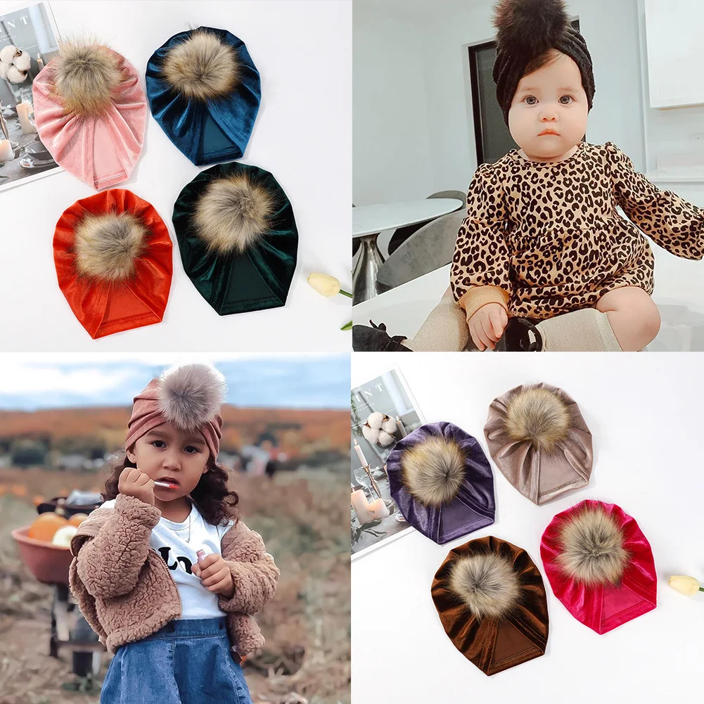 Шапка-тюрбан с помпоном, для мальчиков и девочек, детская зимняя шапка, От 6 месяцев до 3 лет