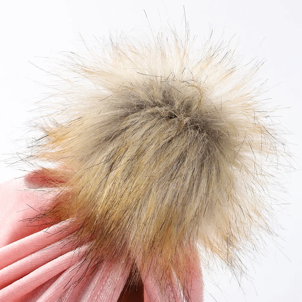 Шапка с меховым помпоном для мальчиков и девочек, однотонная Теплая...