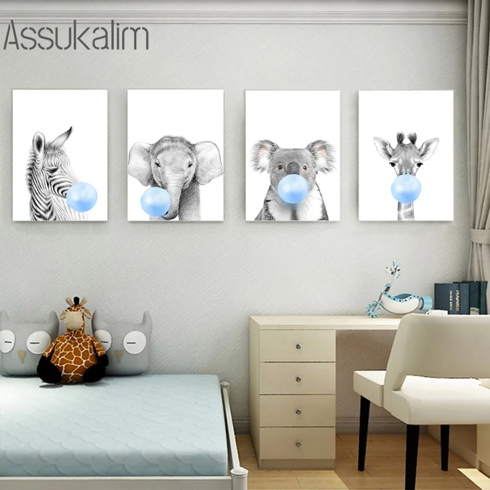 Плакат панды слон, жираф, Зебра, принт для детской стены, художеств...