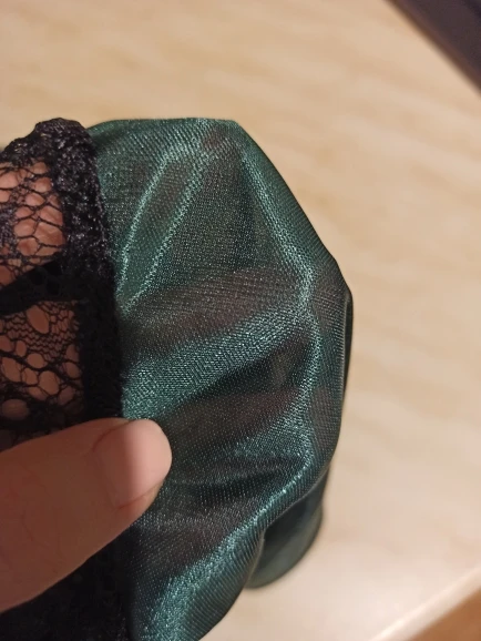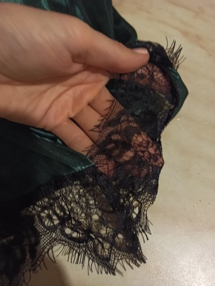 ужасная просвечивающая ткань, очень странная выкройка (на груди, где треугольная вставка, непонятная "сосиска" из кружевов, так как она пришита со сборкой). и в 1 месте кружева перекручены. лучше добавьте и купите нормальный комплект. на российский 42 s нормальный.