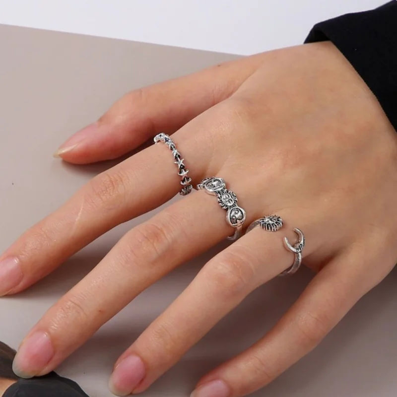 Комплект колец в готическом стиле для женщин и девушек, открытый геометрический перстень в стиле ретро, 3 шт.комплект, Ювелирное Украшение в стиле панк, солнце, луна, звезды