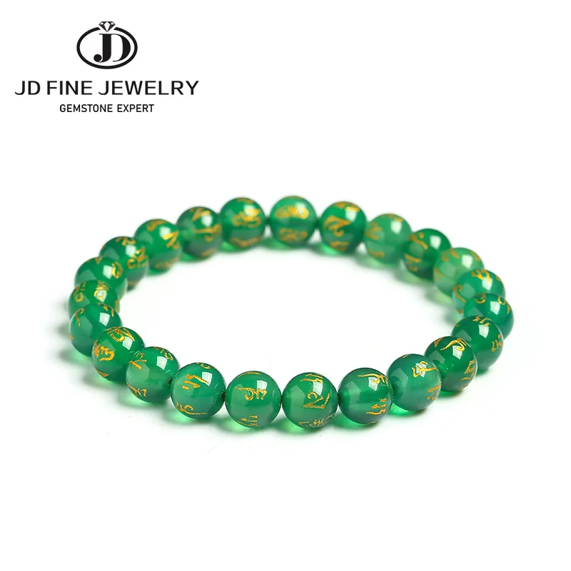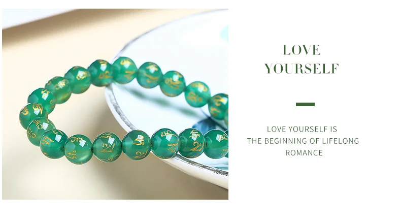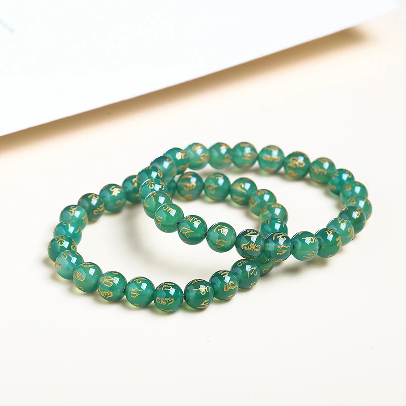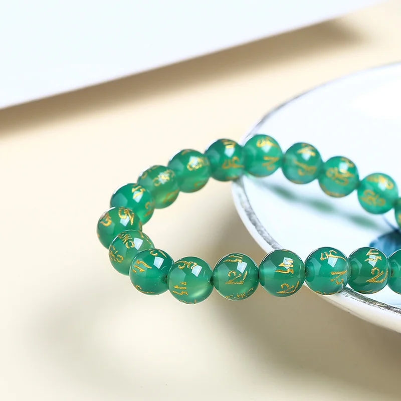 Материал: натуральный зеленый агат с буддистскими словами браслет