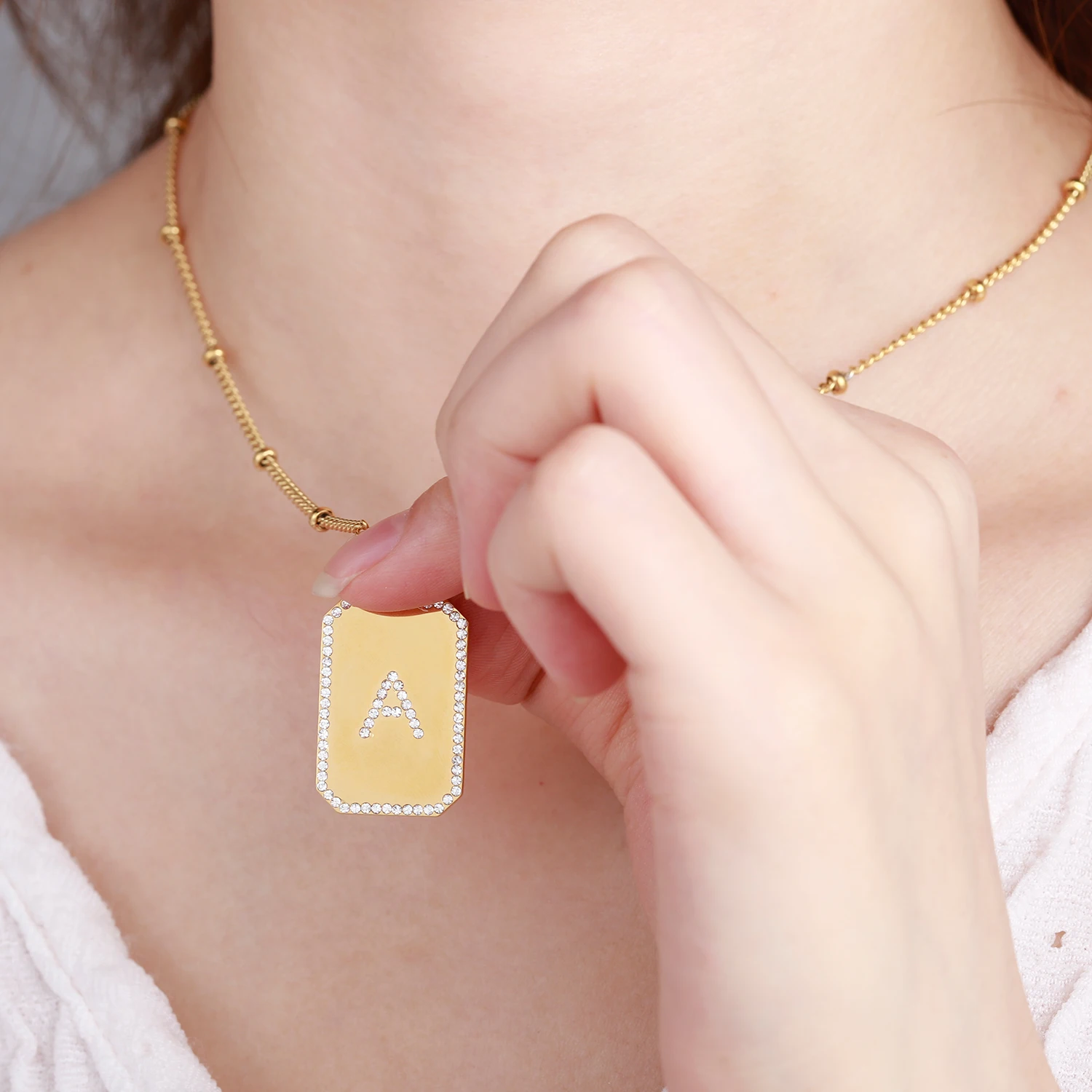 Подвеска из нержавеющей стали с квадратными буквами S и фианитами